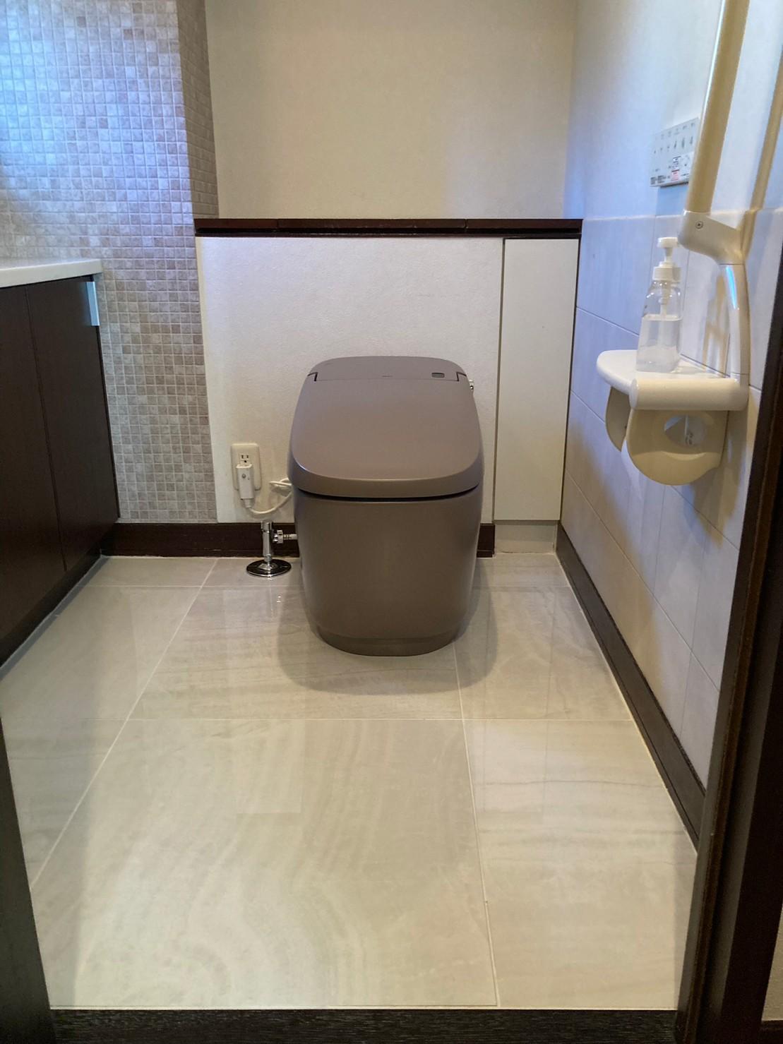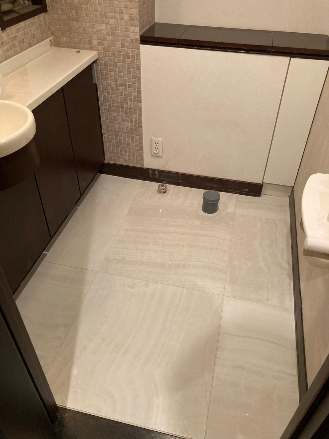 広い空間で上質なタイルが『サティスG』の存在感を際立たせることができました。 施主様にも大変満足していただけたので良かったです。 難易度の高い工事でしたが、職人さん達の経験と腕のおかげで綺麗に仕上がることができました。