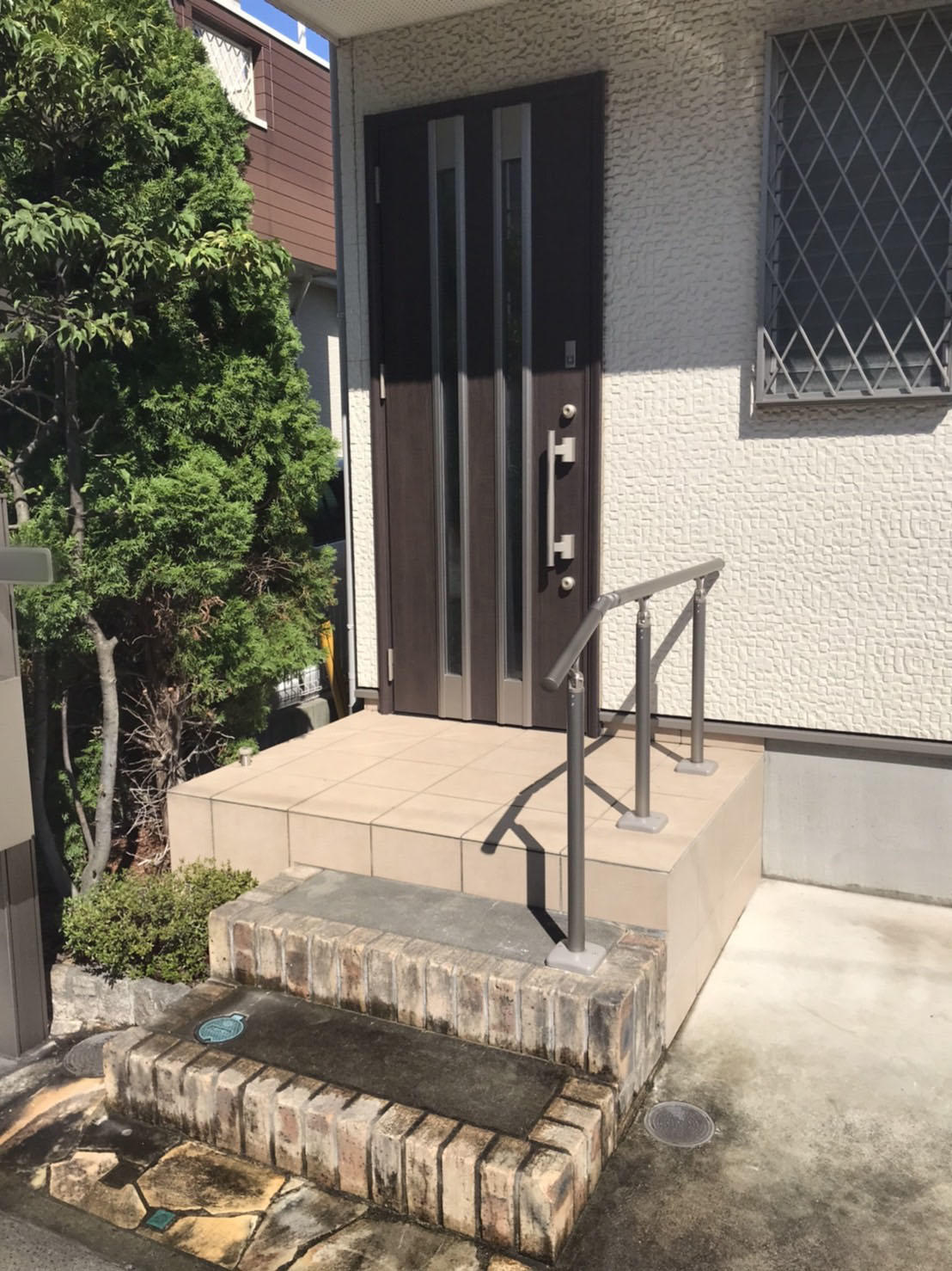 手すりを固定する穴を明ける際にタイルが割れない様に細心の注意を払いながらの作業となりました。