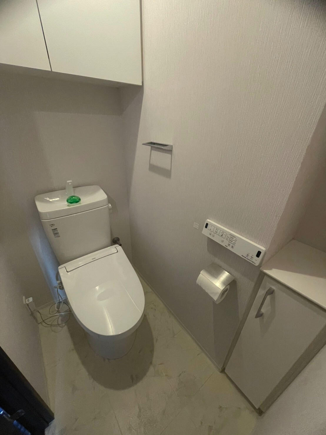 古くなってきたので交換希望となりました。 Jフィットをご提案しました。 タンクなどを隠して見た目すっきり、お掃除が楽になります。