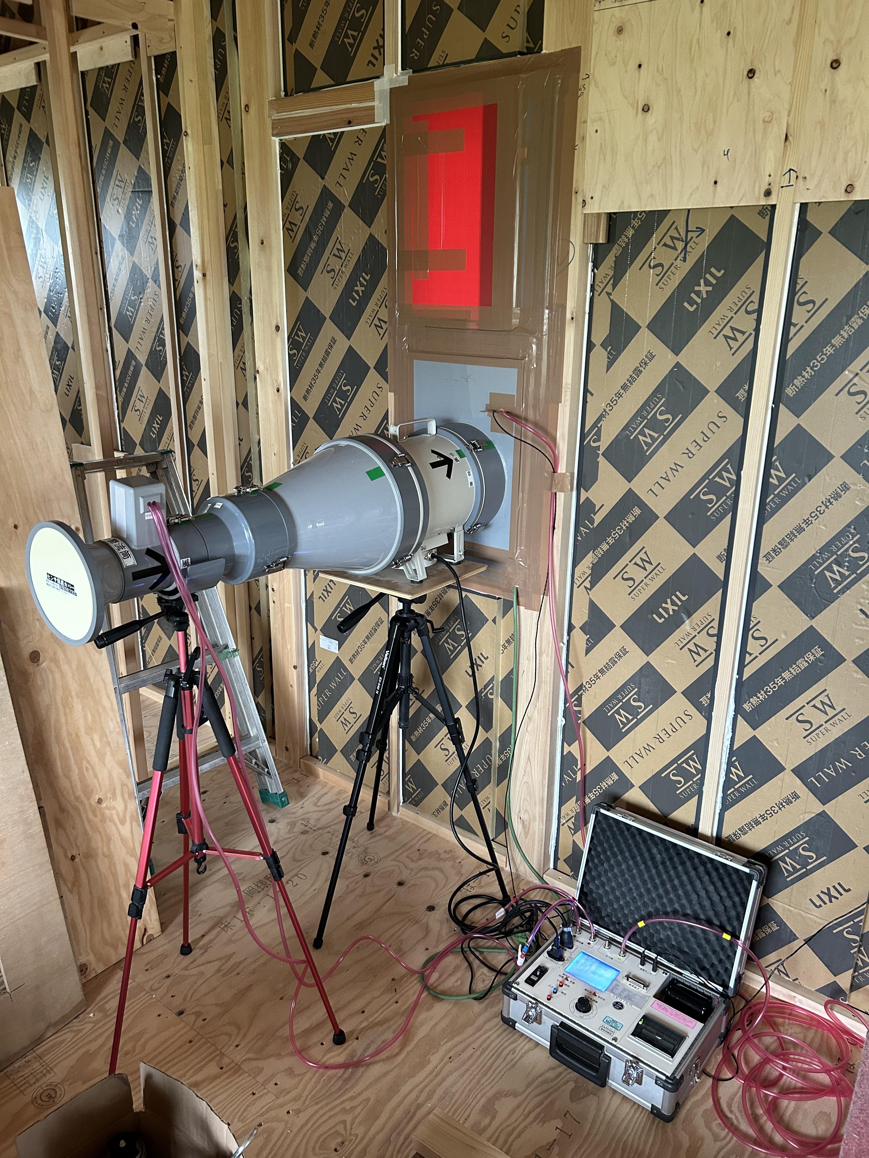 気密性能がどれくらいの数値がでるかドキドキしながら気密試験も行いました。