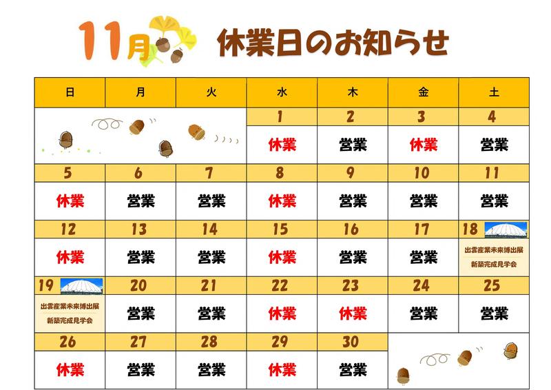 11月の休業日のお知らせ