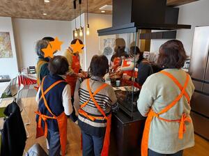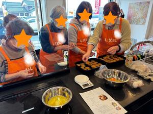 最新のキッチンを使ってお客様と一緒に調理実演を行いました