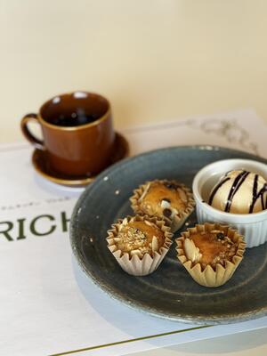 焼きあがったカップケーキに手作りのアイスクリーム、