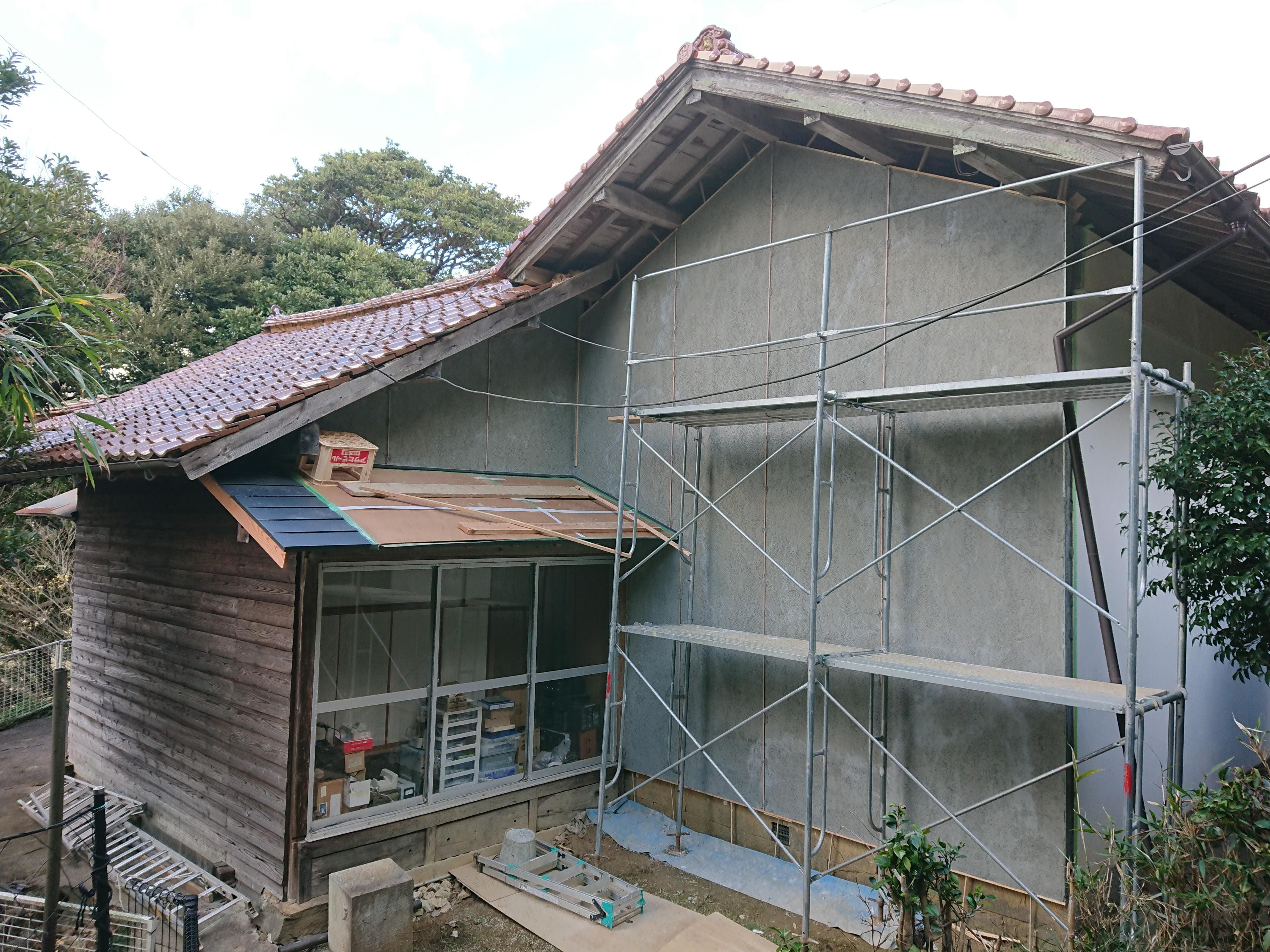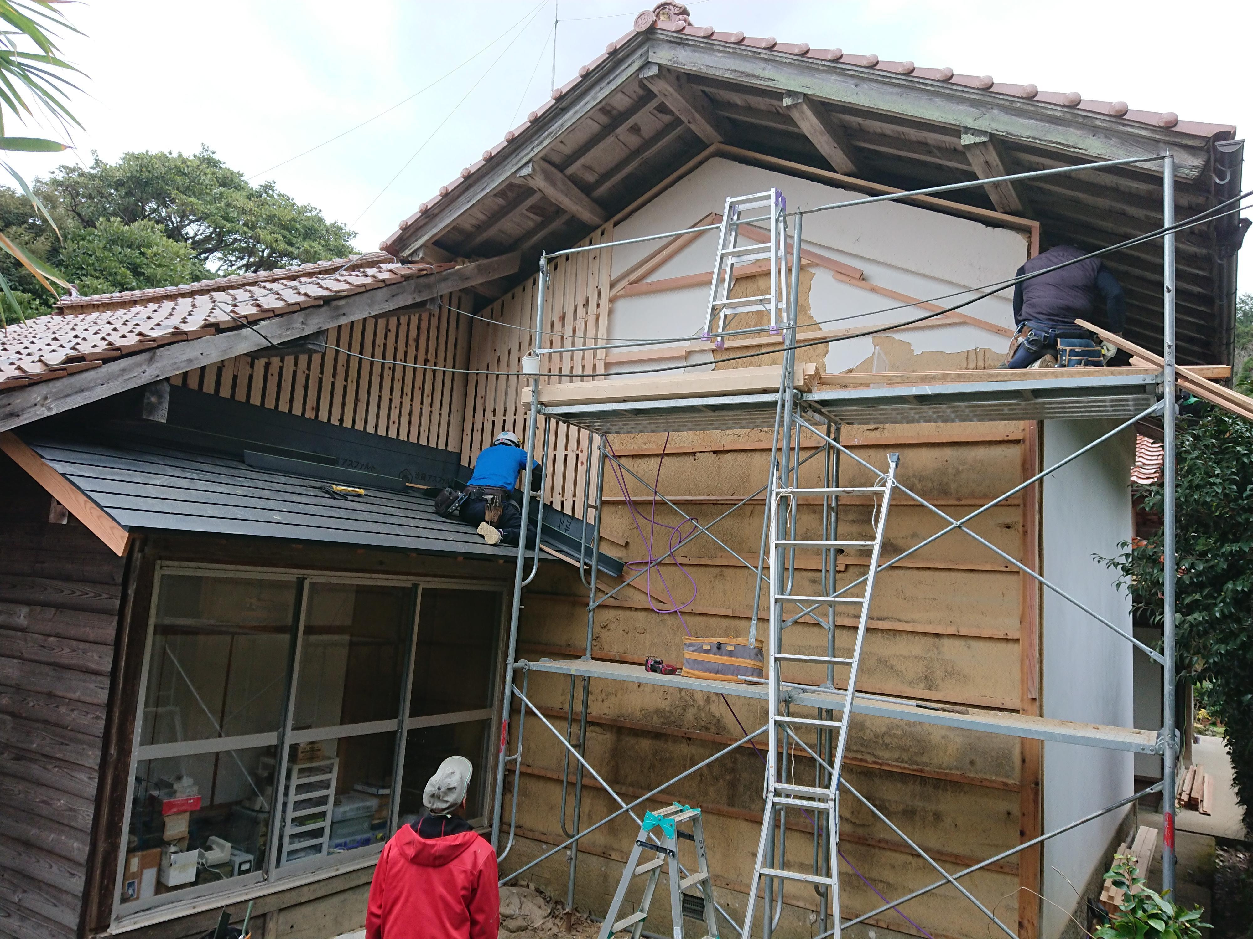 古くなった蔵の壁を、丈夫で耐久性のある壁へと改修致しました。 蔵に接する母屋部分の壁と屋根も合わせてお色直しをしました。