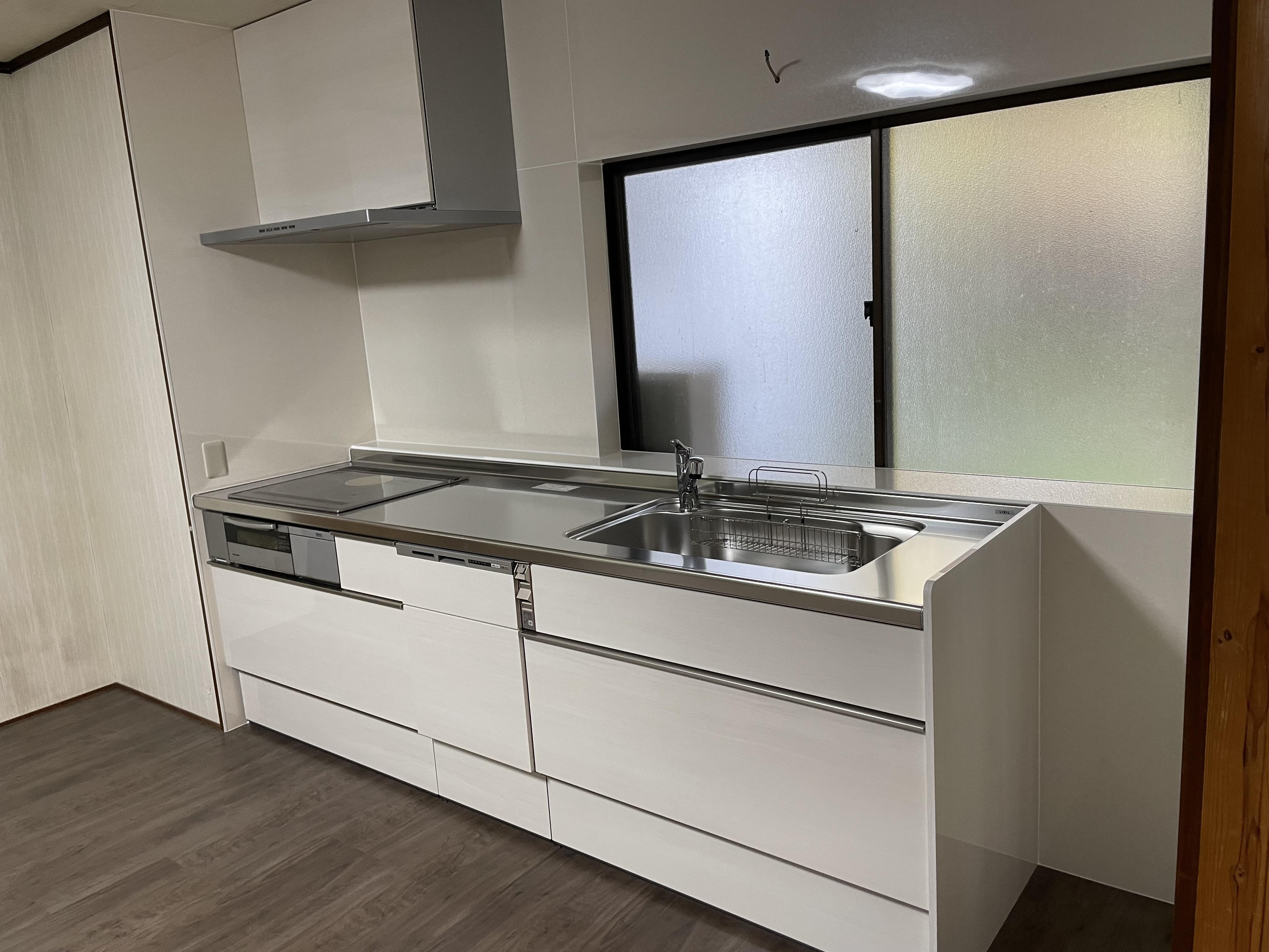 キッチンはLIXILの「シエラ」に交換です。 扉のカラーはクロスライトウッド。 清潔感の中にやわらかさがある素敵な色ですね。