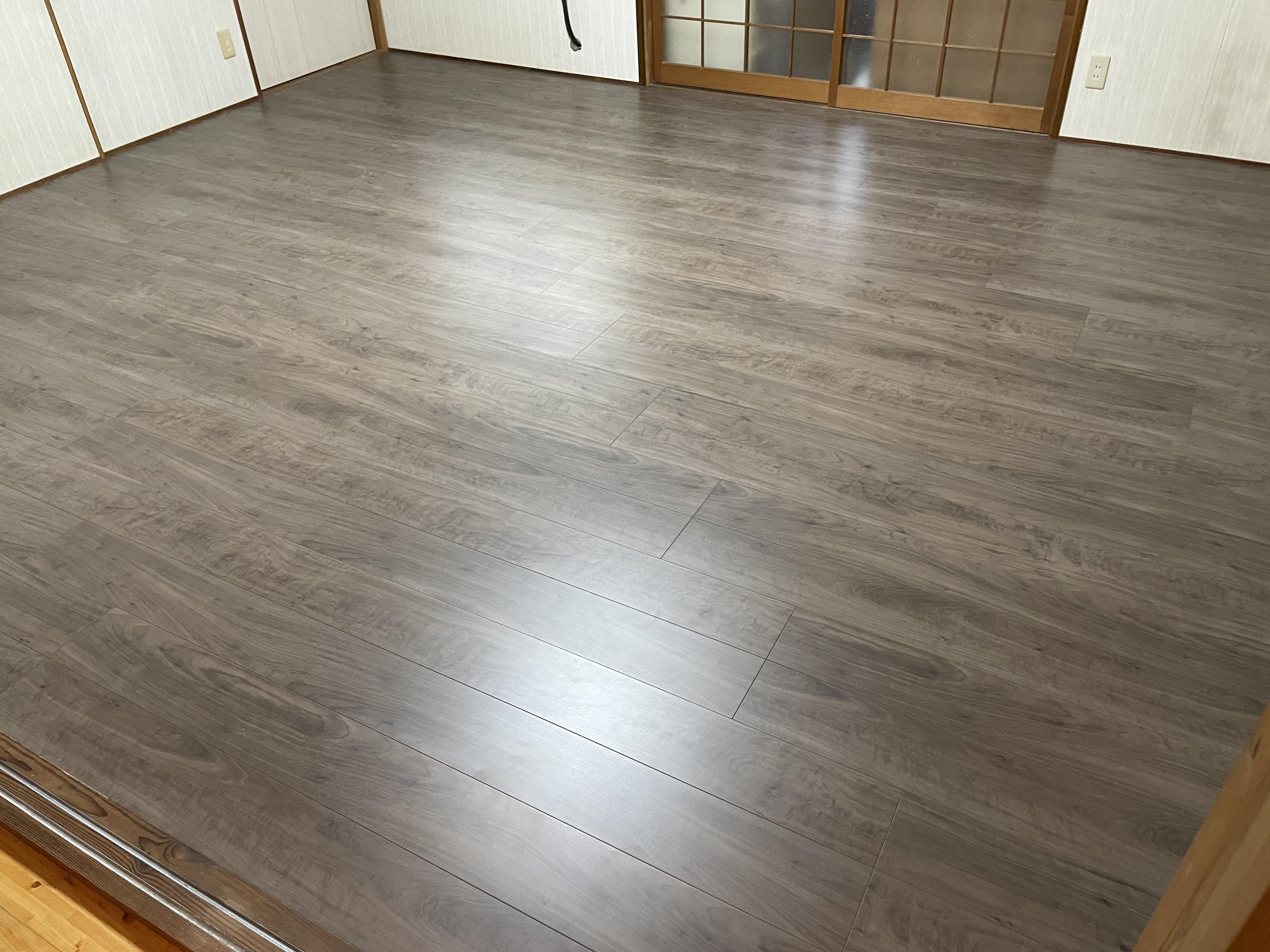 床は、まだ内部がしっかりしていたため、今回は張替えではなく、 現在の床の上にフローリングを重ね張りする方法で工事をさせていただきました。