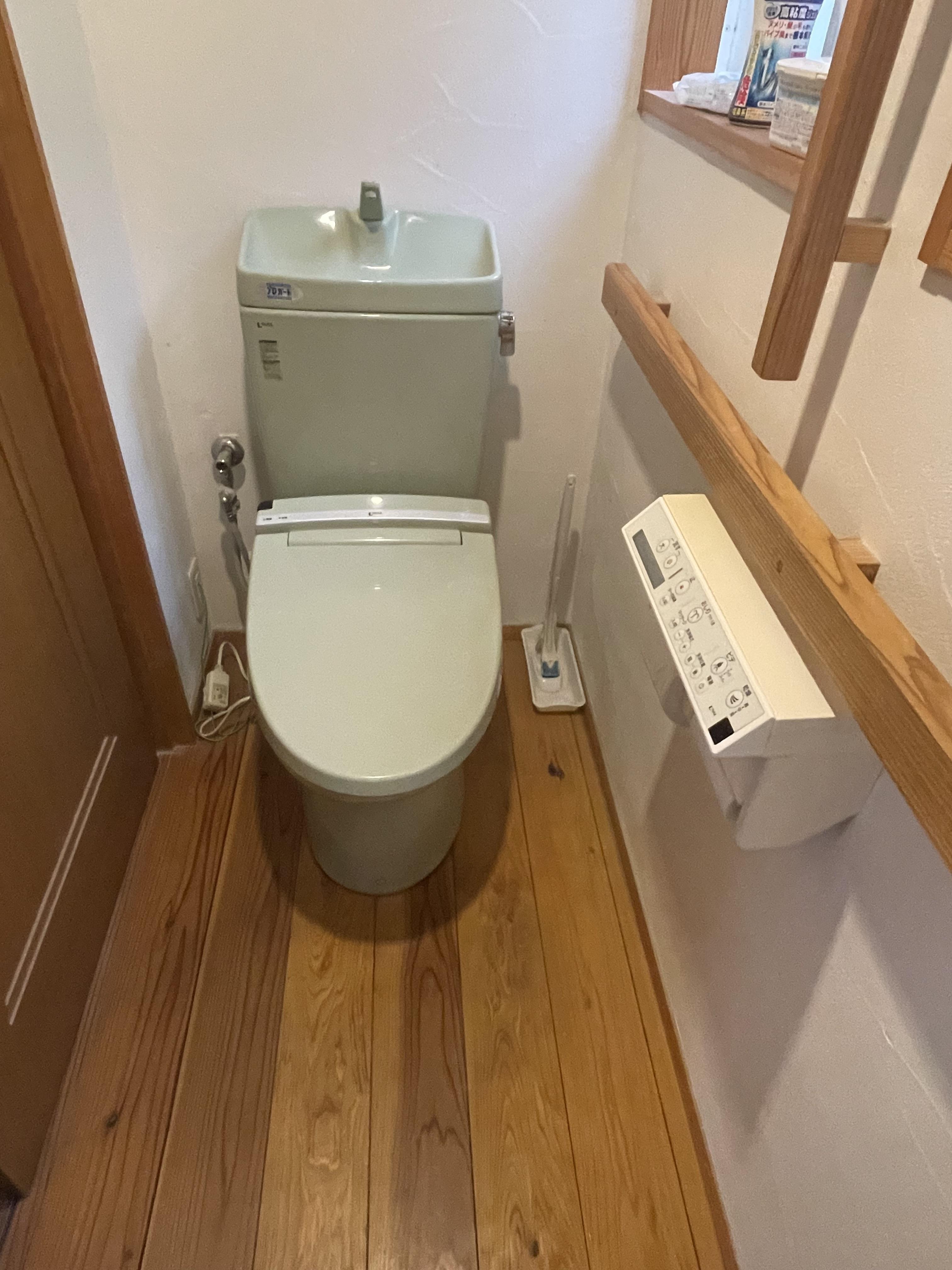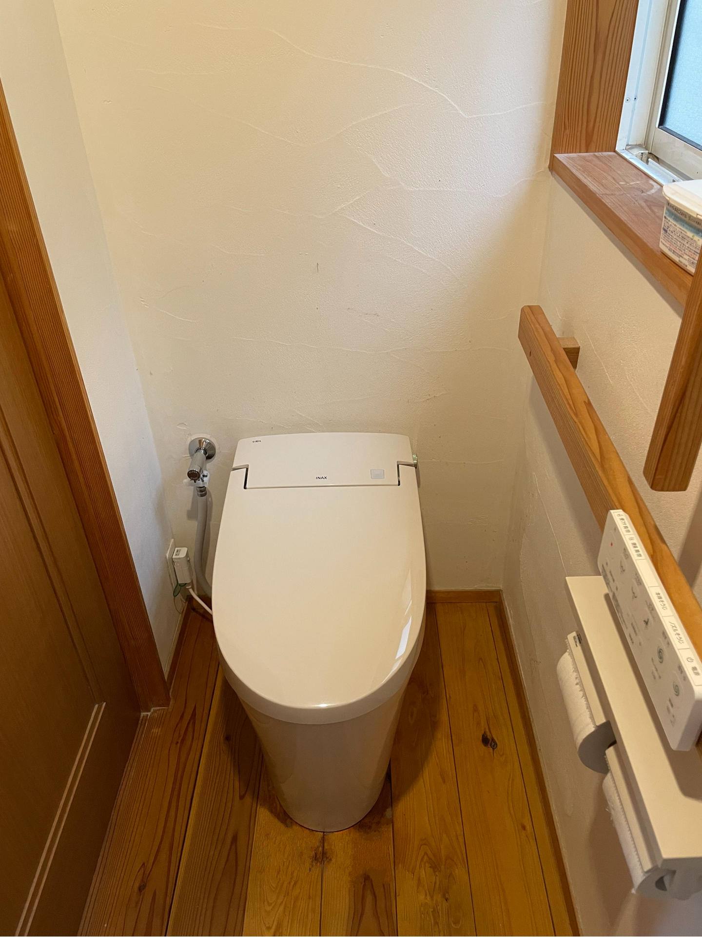こどもみらい補助金を使い、トイレ交換と内窓設置4ヶ所と出窓のガラス入替1ヶ所のリフォームしました。 トイレをタンクレスのサティスSに変更したため、トイレ前のスペースが以前と比べて広がりとても動きやすくなりました。 トイレのカラーも柔らかでご主人お手製の壁ともマッチした素敵な空間に仕上がりました。