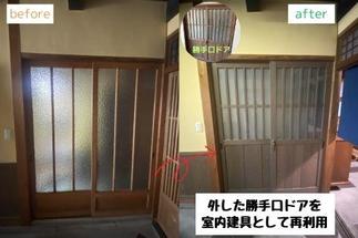 そして、勝手口で使われていたドアも趣きがあり素敵なので、室内建具として再利用いたしました。