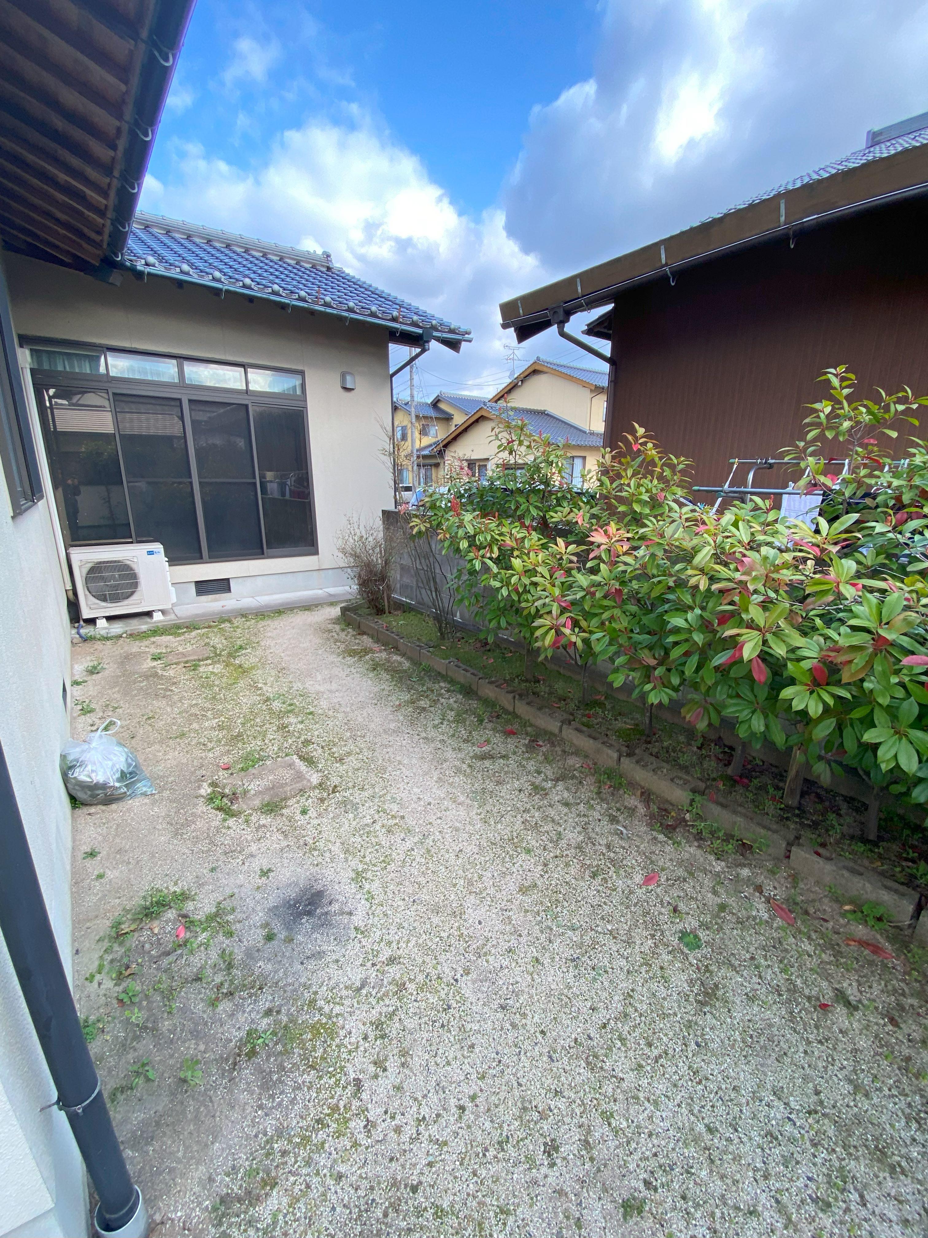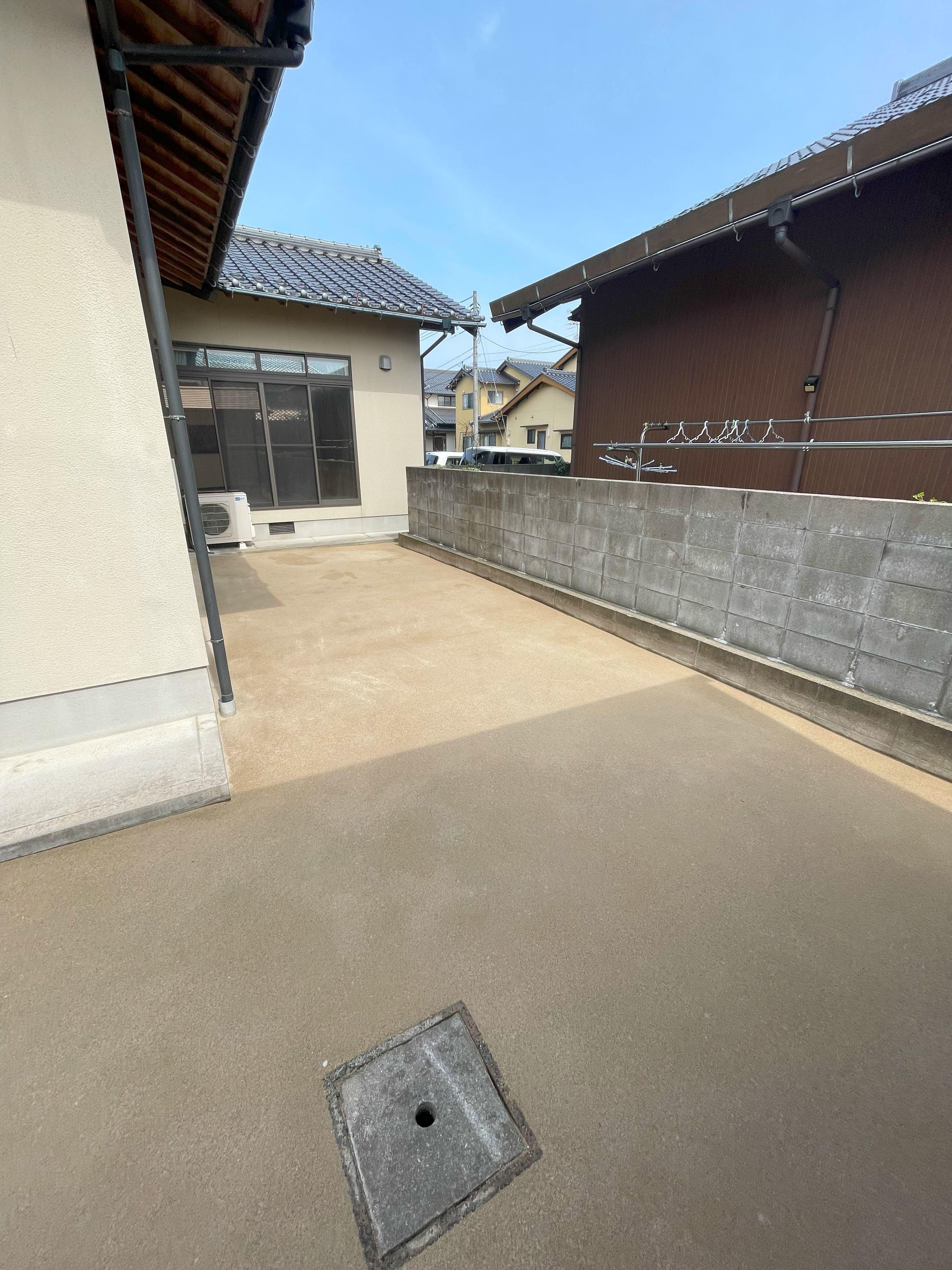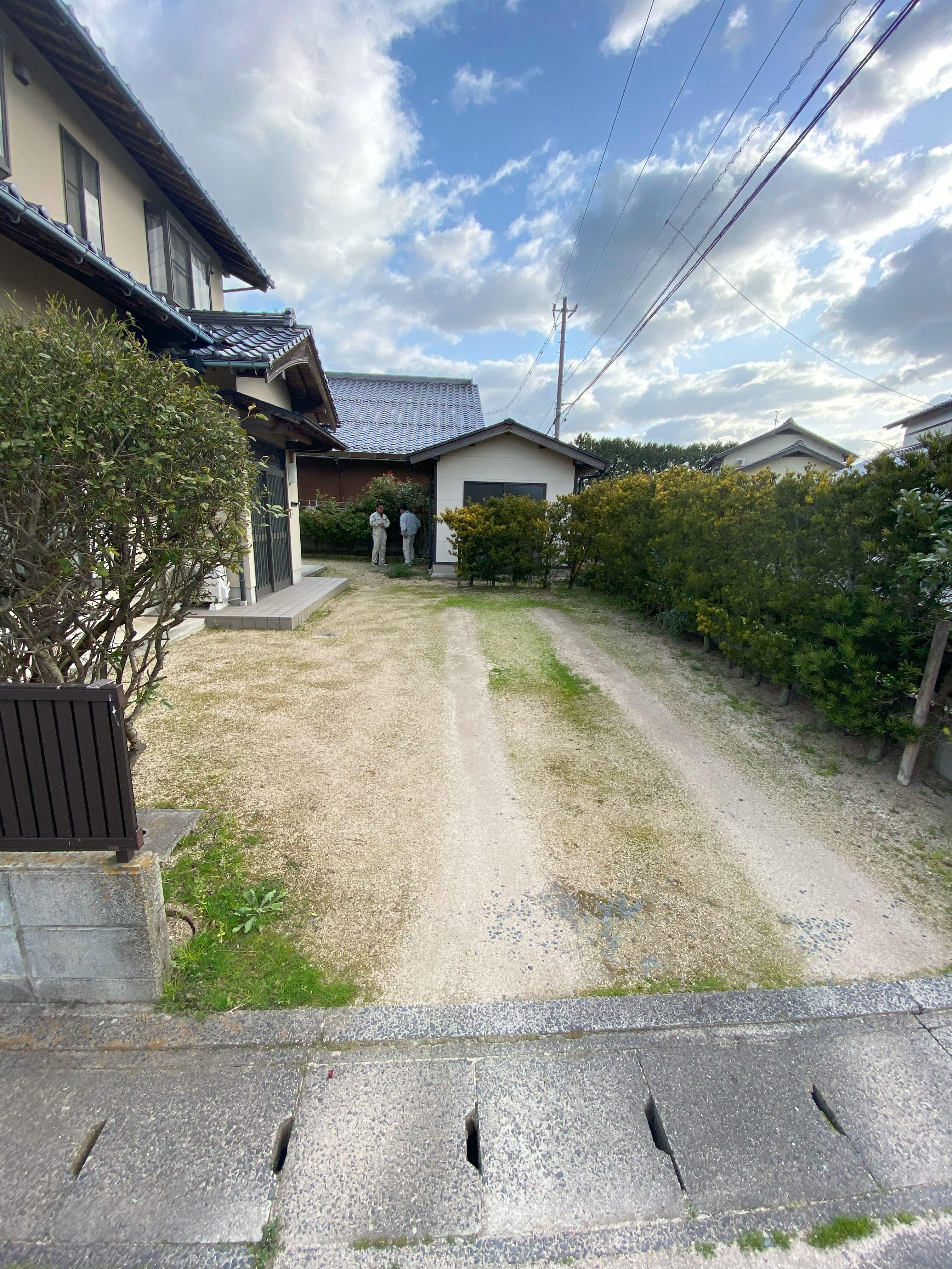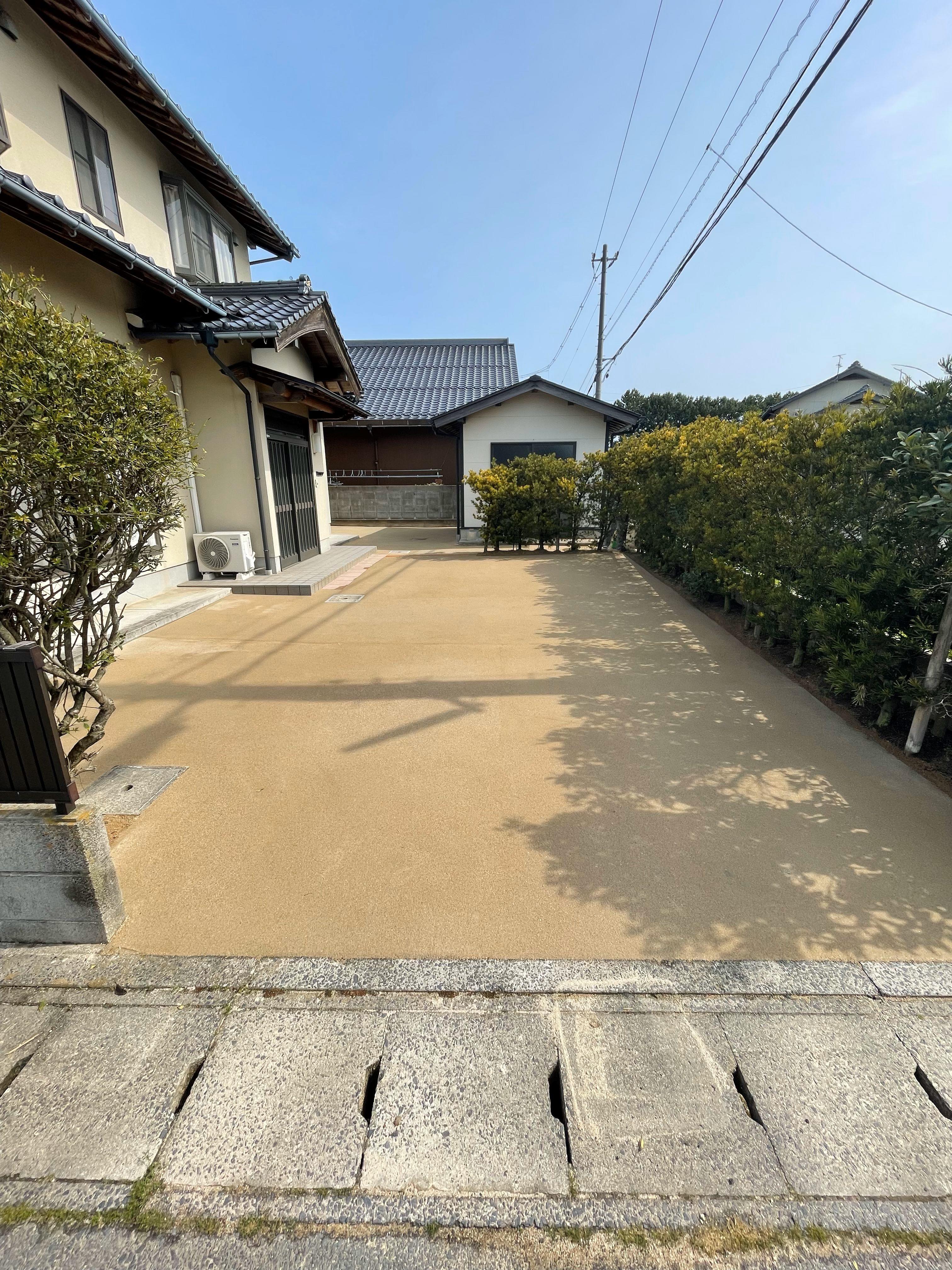 雑草の処理にずっとお悩みだったお施主様へ、見た目は砂のまま雑草が生えてこない「土舗装」をご提案致しました。
