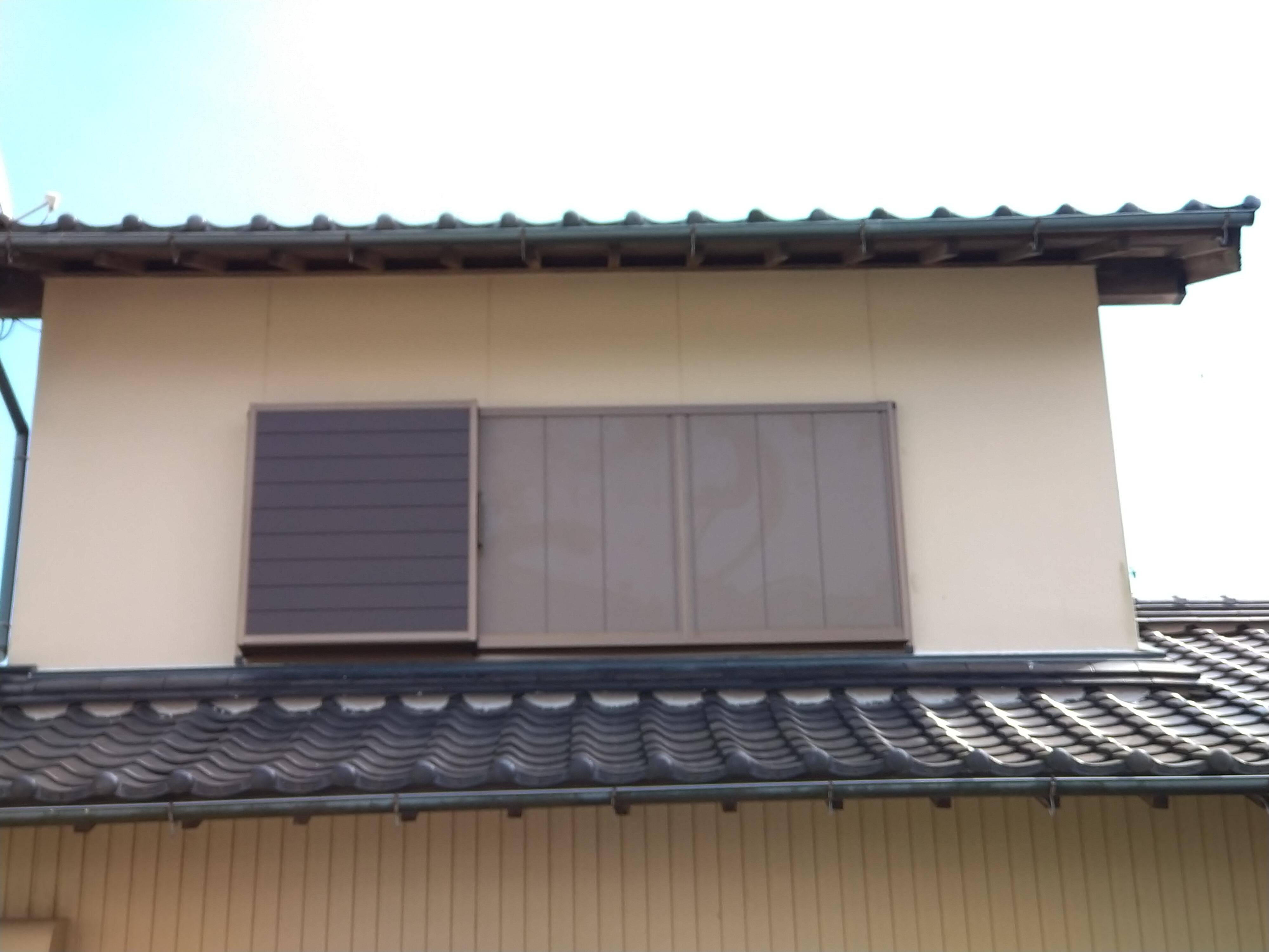 台風や雨風の時に雨が吹き込むとのことで、2階の廊下の所に戸袋をつけたいとのことで、既存の窓に簡単につけれるLIXILのリフォーム雨戸「雨戸一筋」を設置させていただきました。