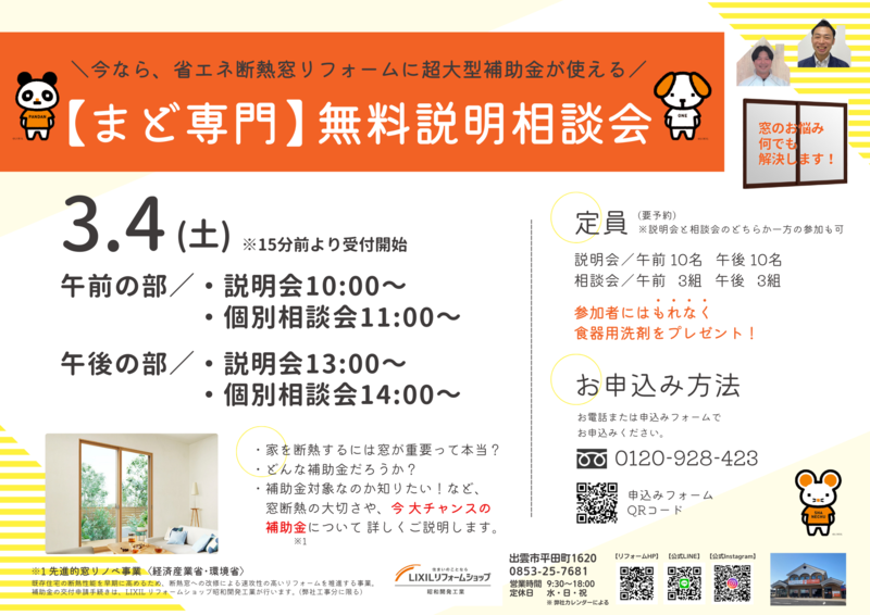 今回の無料説明相談会では、窓や補助金についてわかりやすくご説明しますので、どなたでもお気軽にご参加ください。