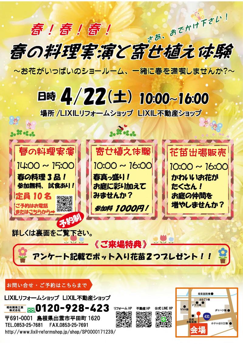 【場所】 出雲市平田町1620(LIXILリフォームショップ・LIXIL不動産ショップ昭和開発工業店舗)