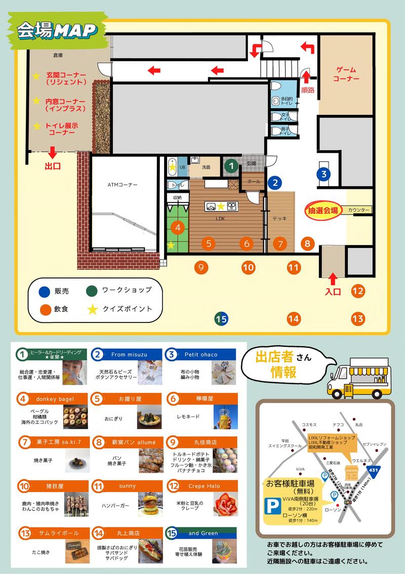 建材展示コーナー(トイレ・玄関・内窓)、ゲームコーナー(魚釣り・空き缶積み)、