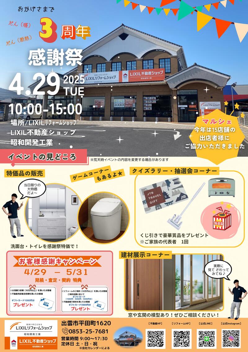 4/29(火・祝)『3周年だんだん感謝祭』を開催いたします!