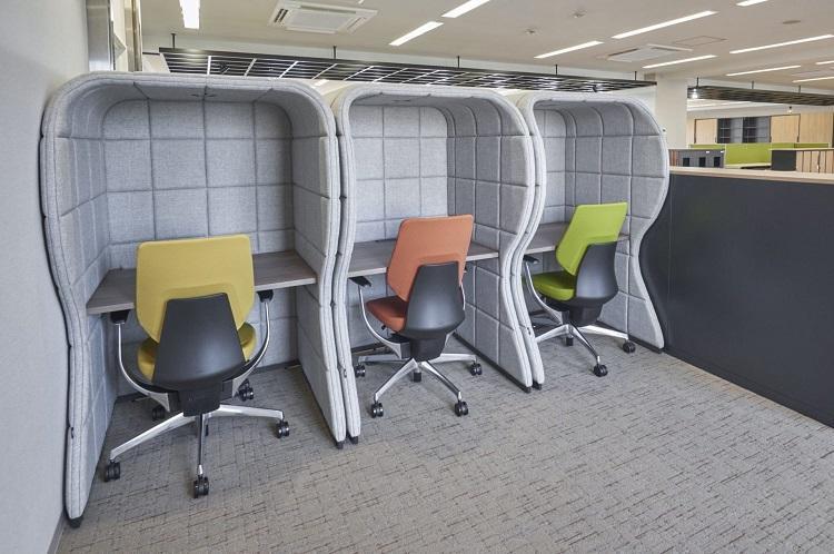防音性の高い特殊な素材が使われている為、短時間で集中して業務に取り組める空間です。