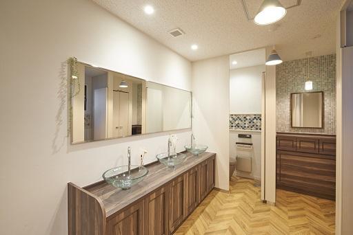 5階の女子トイレには、色違いのランタンタイルや便座を採用し、女性だけの特別な空間をデザイン。