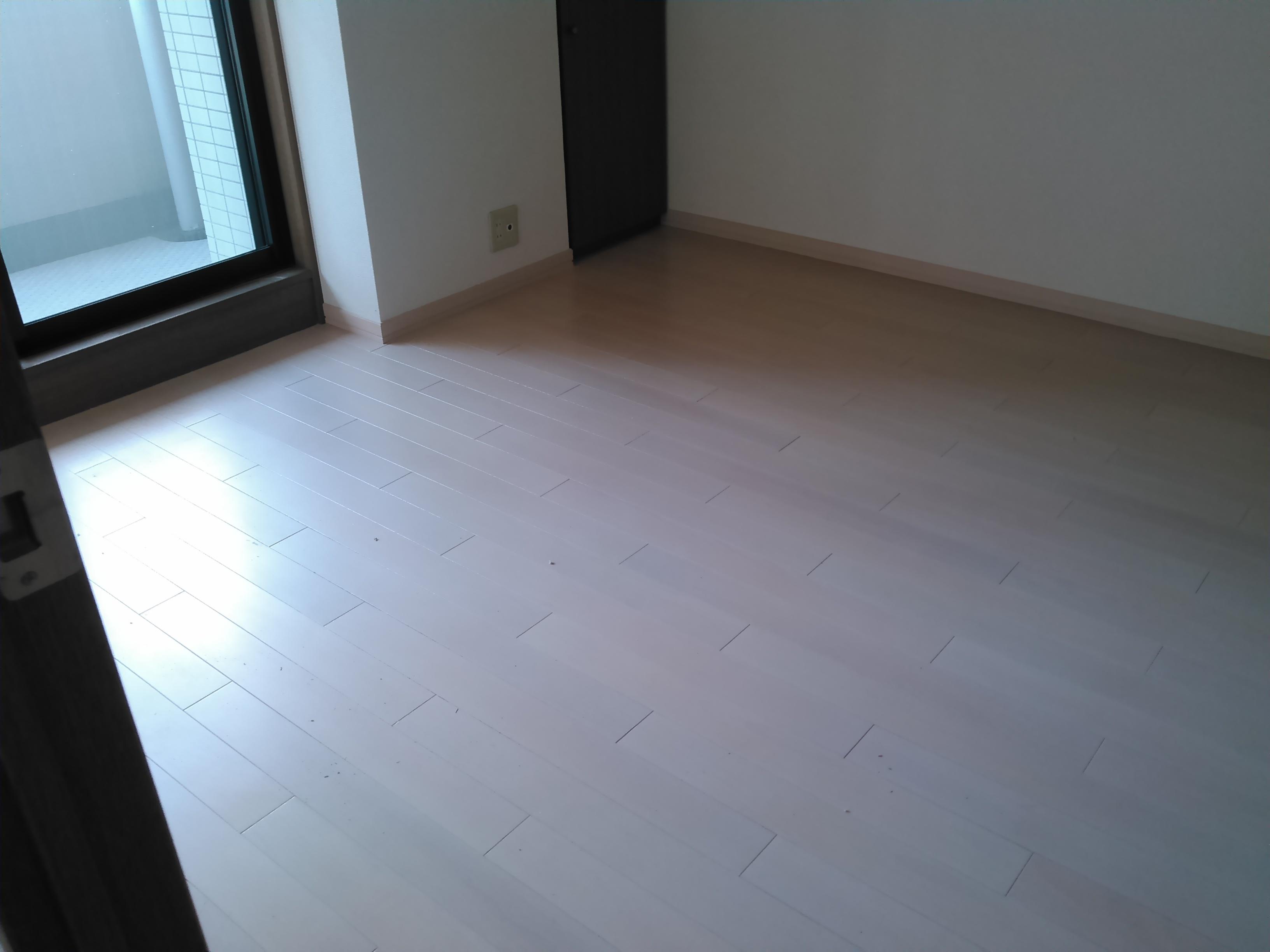 床を絨毯からフローリングに変更。 巾木もフローリングの色に合わせて変えています。 清潔でお掃除しやすくなりました。