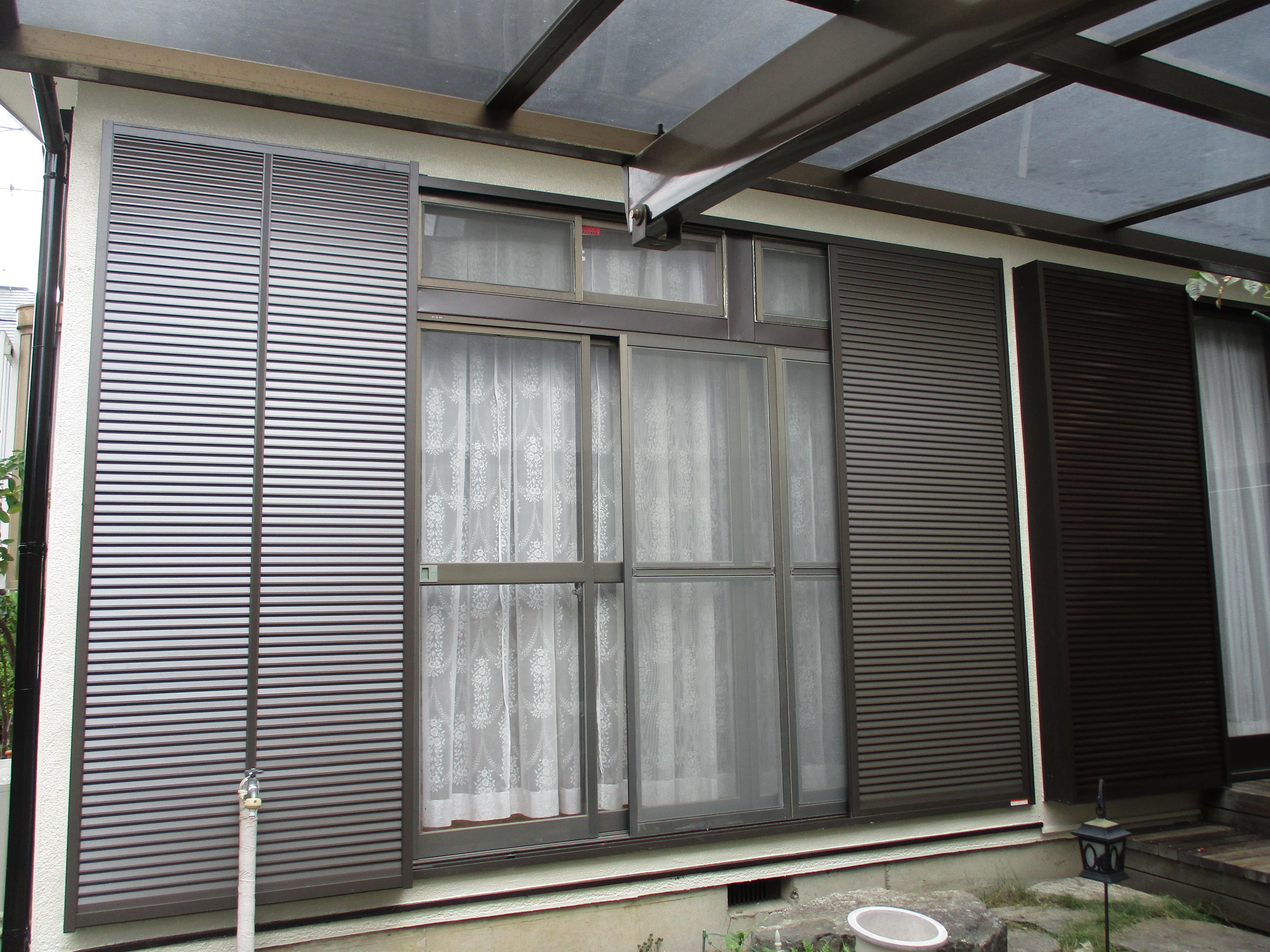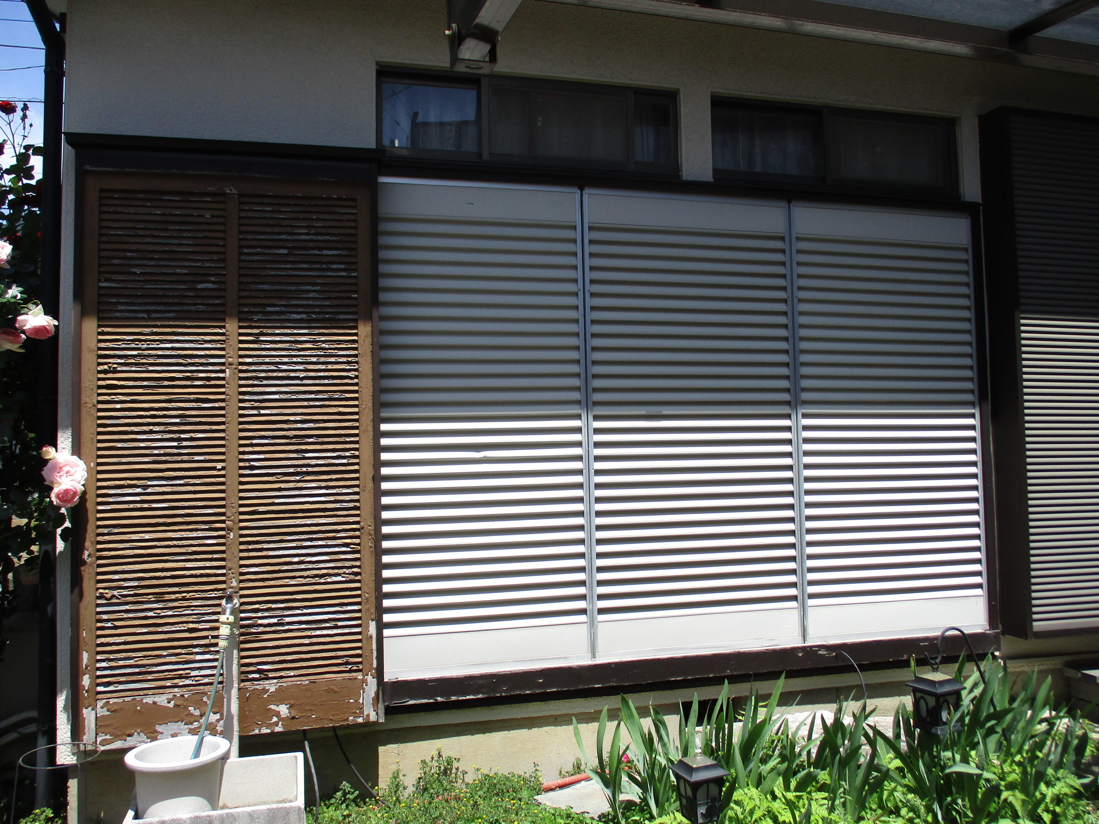 木製の雨戸から軽く丈夫なアルミ製へ交換。