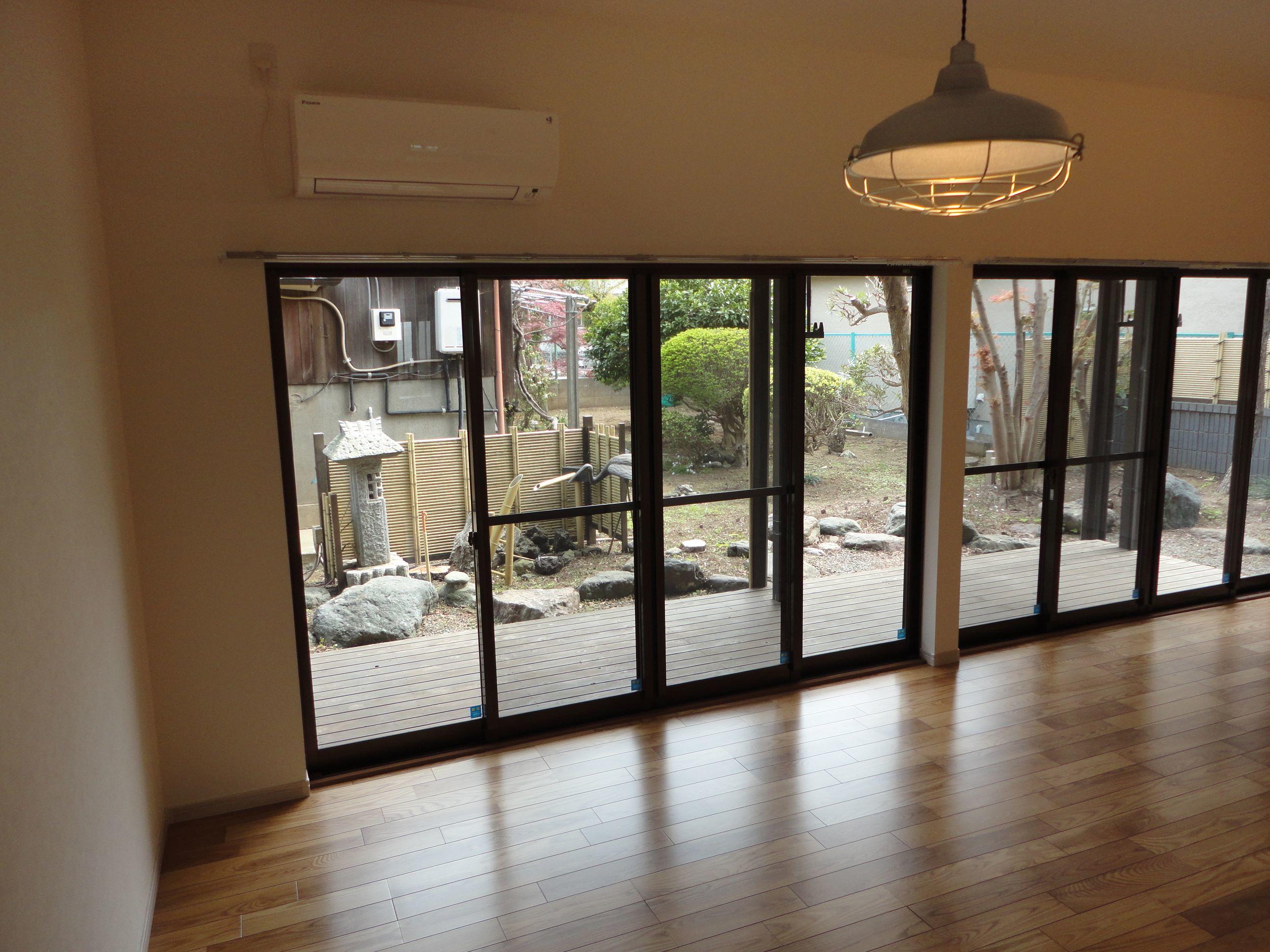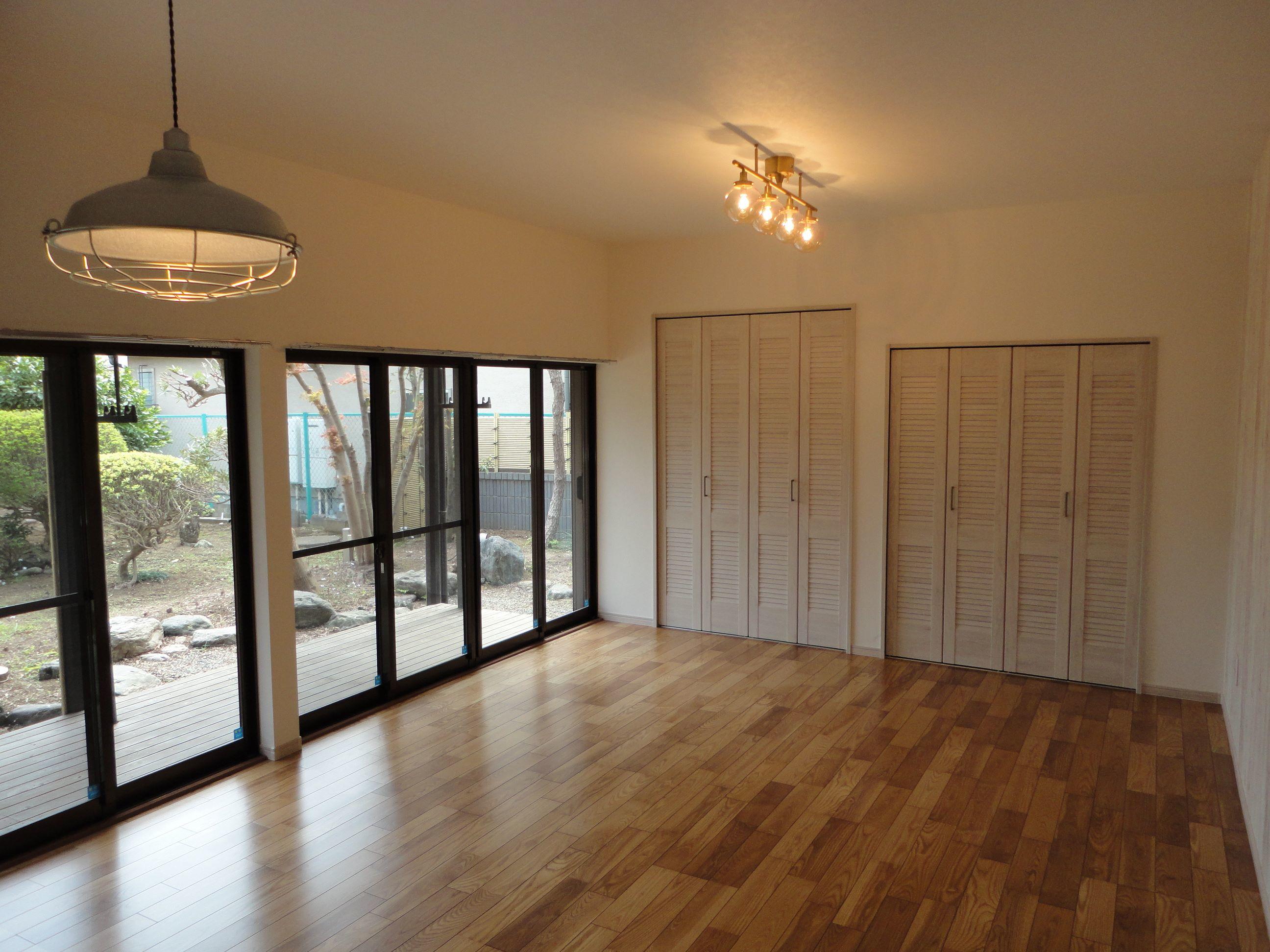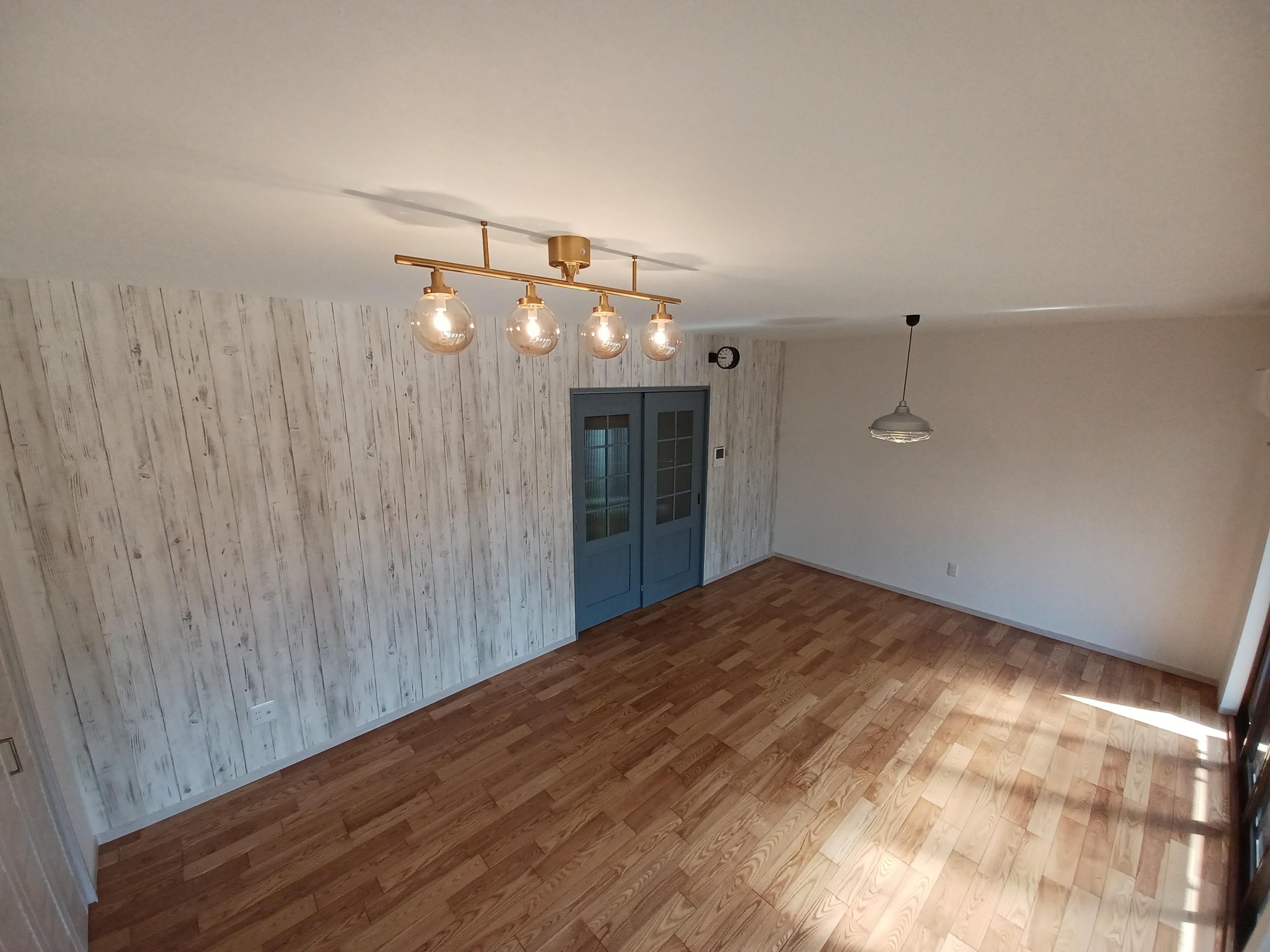 フローリング張替え、お部屋全体改修工事しました。照明器具やドアも個性のある色や形からチョイス、お洒落なお部屋に変わりました。