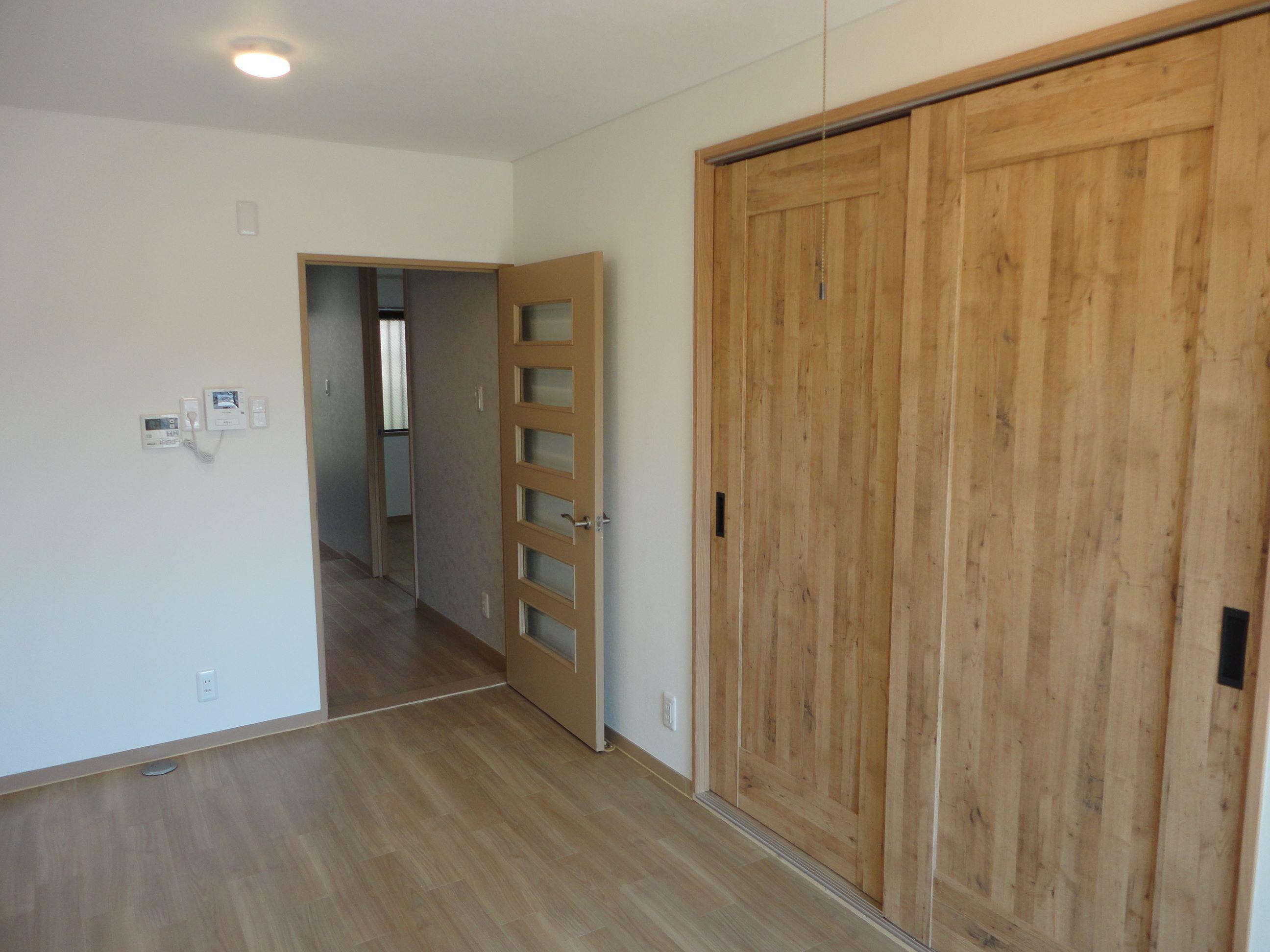 アパート1室をフルリフォーム ダイニング、洋間2部屋のドア、クロス、照明、床の張替えしました。 ドア Panasonic「ベリティス」