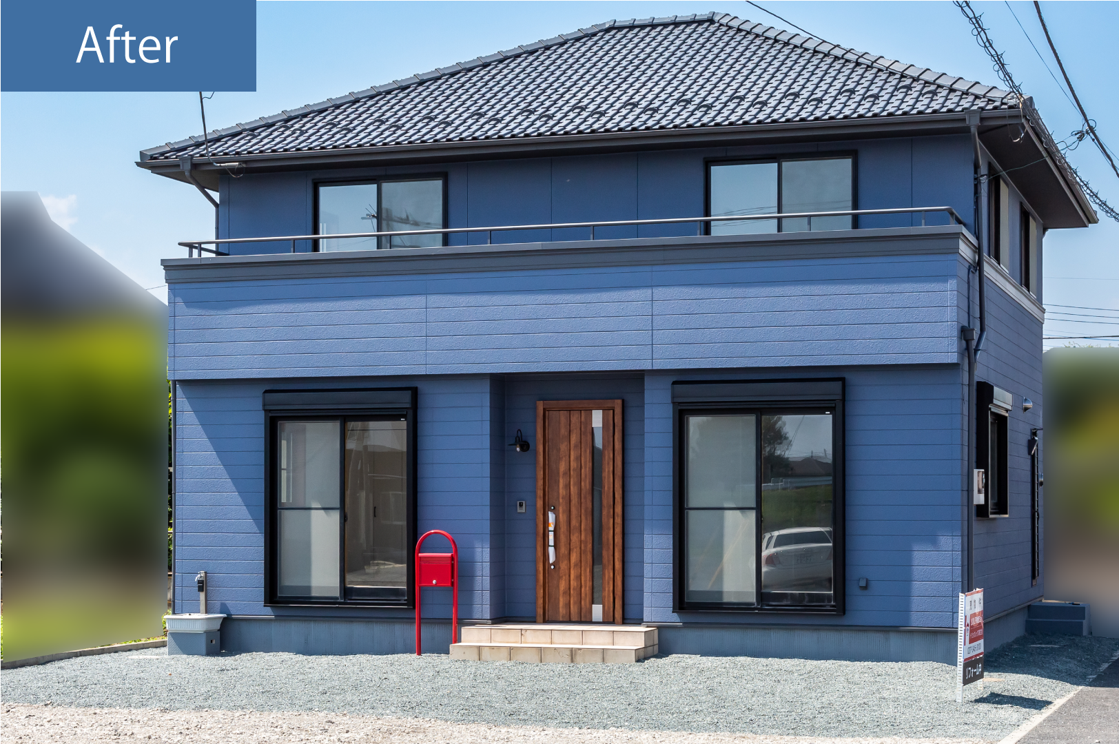 また、新たにシャッターをつけて防犯面も強化! おしゃれなポストも設置。ネイビーの外壁に映えますね。