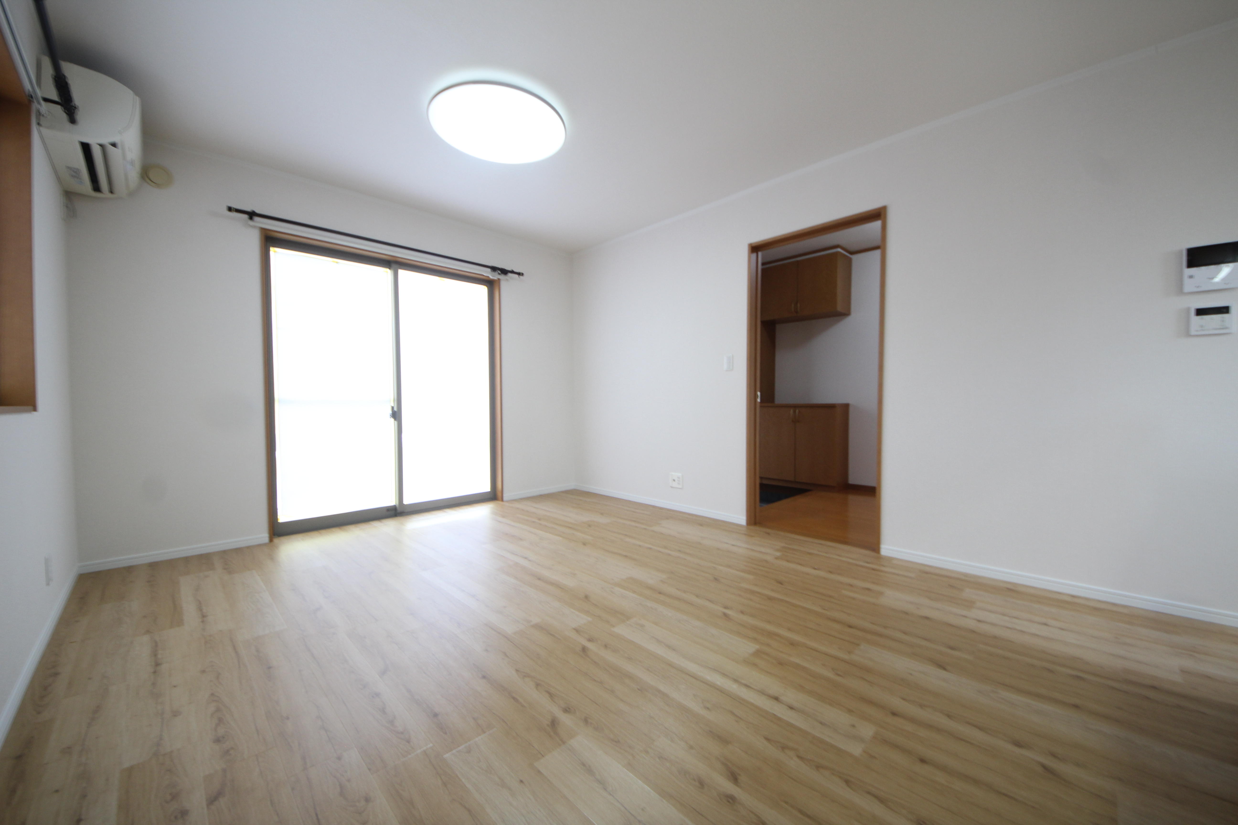 築14年の既存物件のリビング・ダイニング・キッチンの床をリリカラヴィンテージオーク(LYT83640)に張り替えました。 クロスは厚みがありパールの光沢がアクセントの織物調に張り替えました。