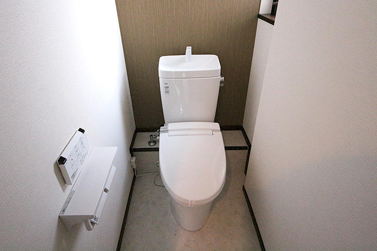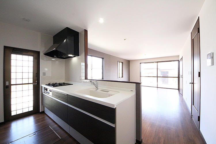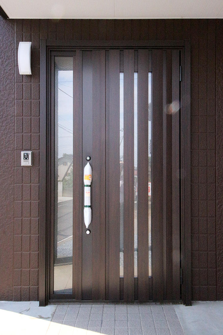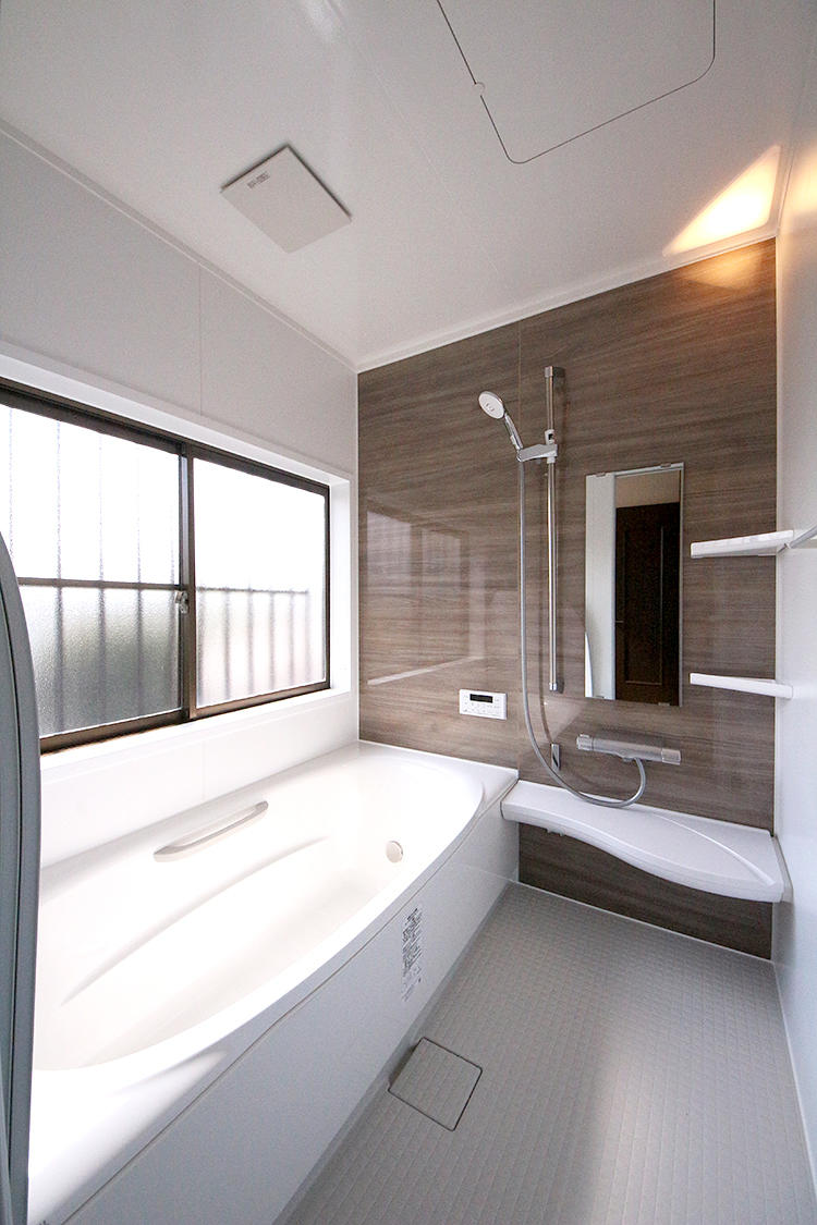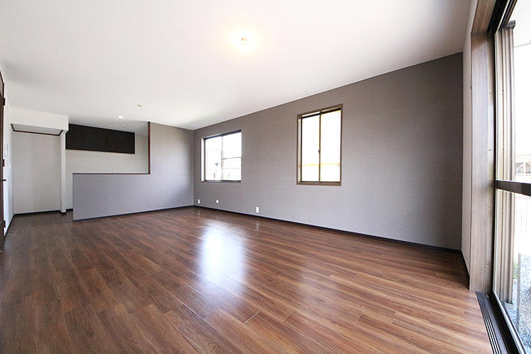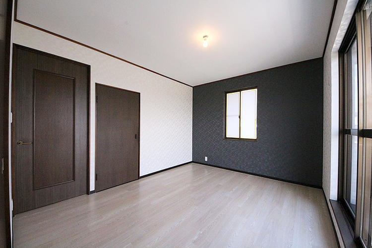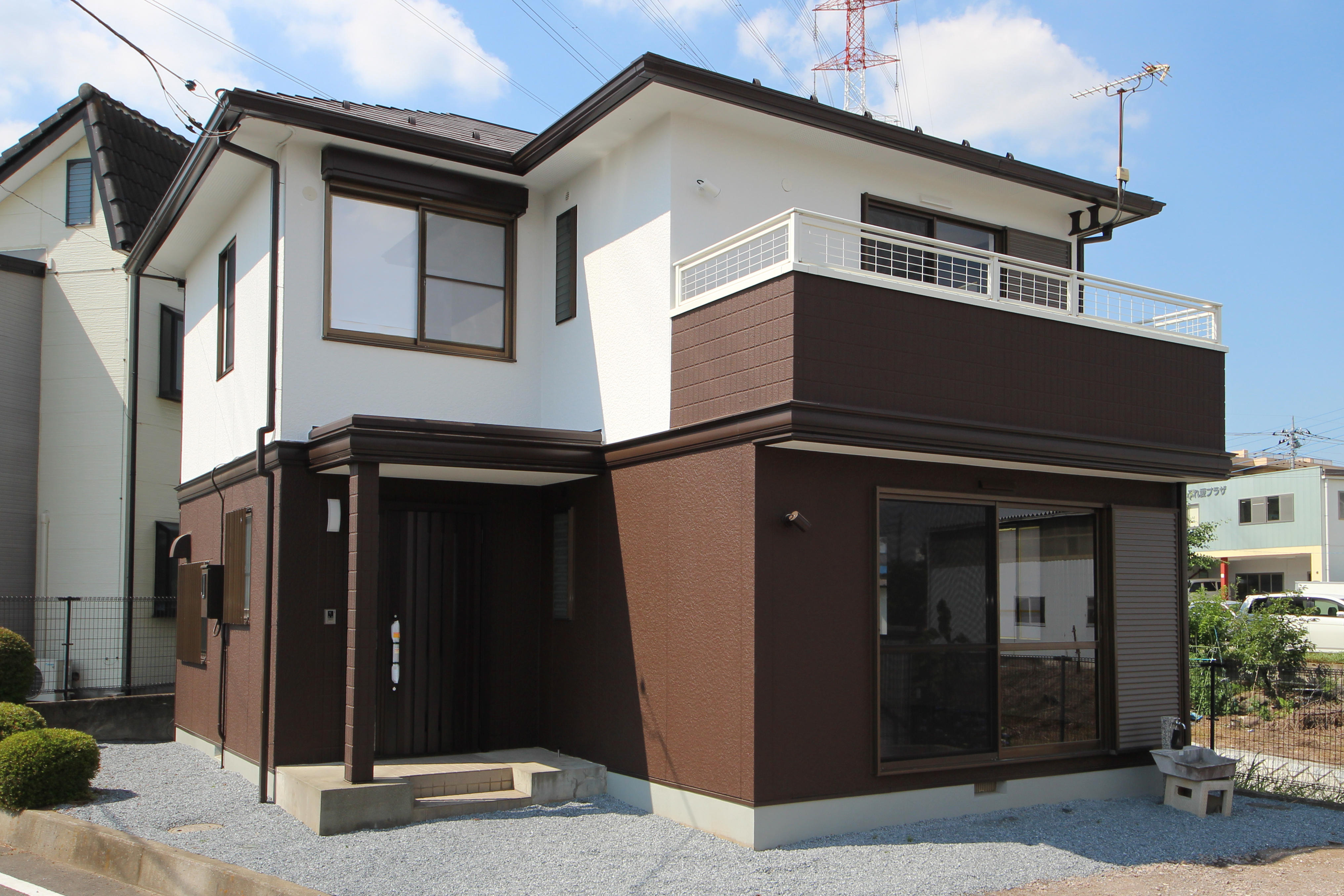 外観はブラウンとホワイトのツートーンでスタイリッシュにしました。 アクセントクロスは人気のグレーを採用。