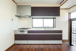 キッチン 施工後リクシル システムキッチン シエラ 扉カラー クリエダーク