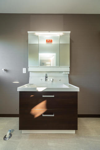 洗面化粧台 施工後 リクシル ピアラ 扉カラー クリエダーク