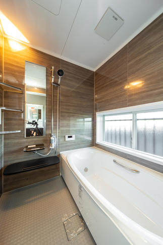 浴室 施工後 リクシル システムバスルーム アライズMタイプ壁パネルカラー ウォールナット