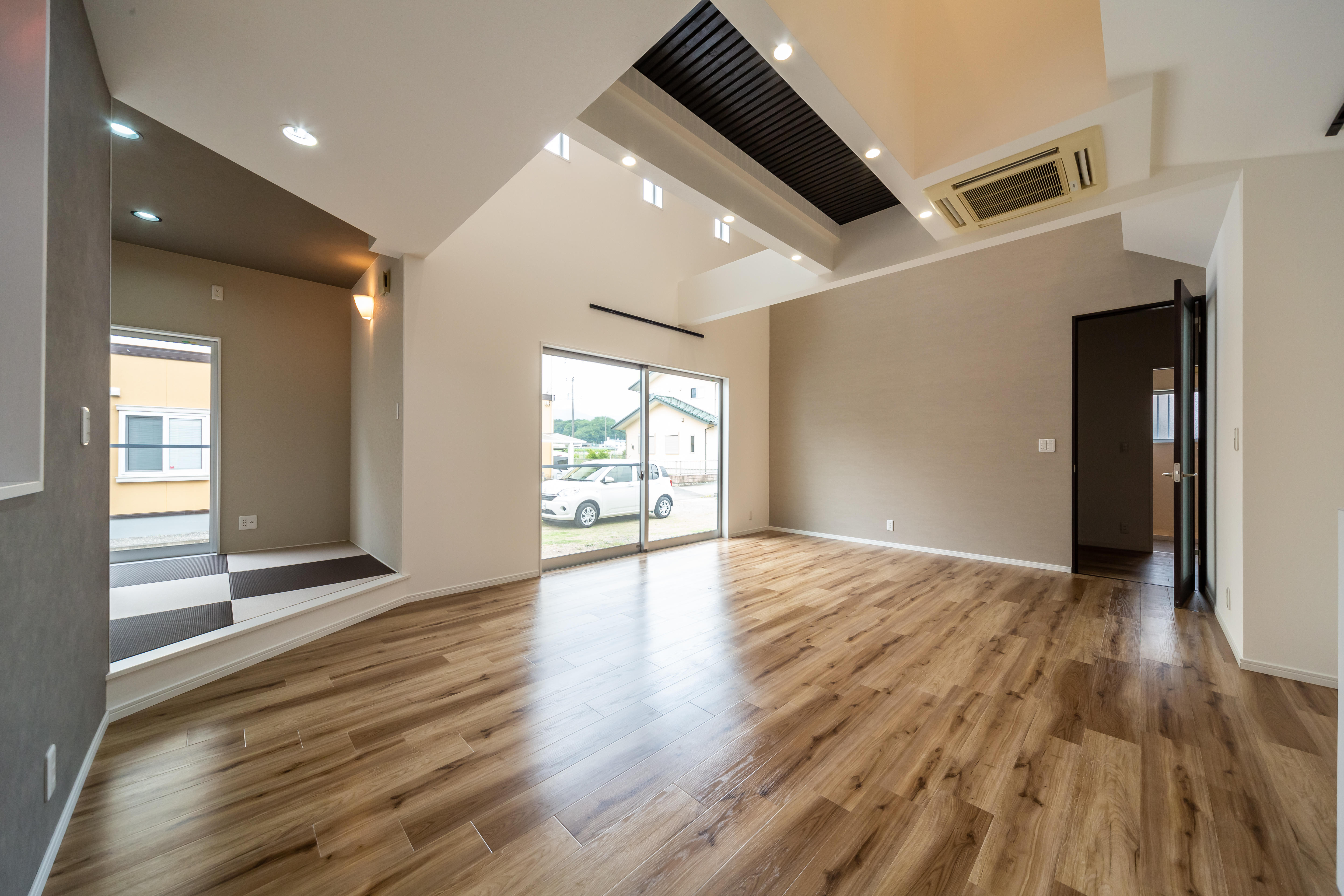大理石調のフローリングを木目の印象的なフローリングに張り替えました。 クロスを明るい色のものに変え、全体的に明るい印象になりました。