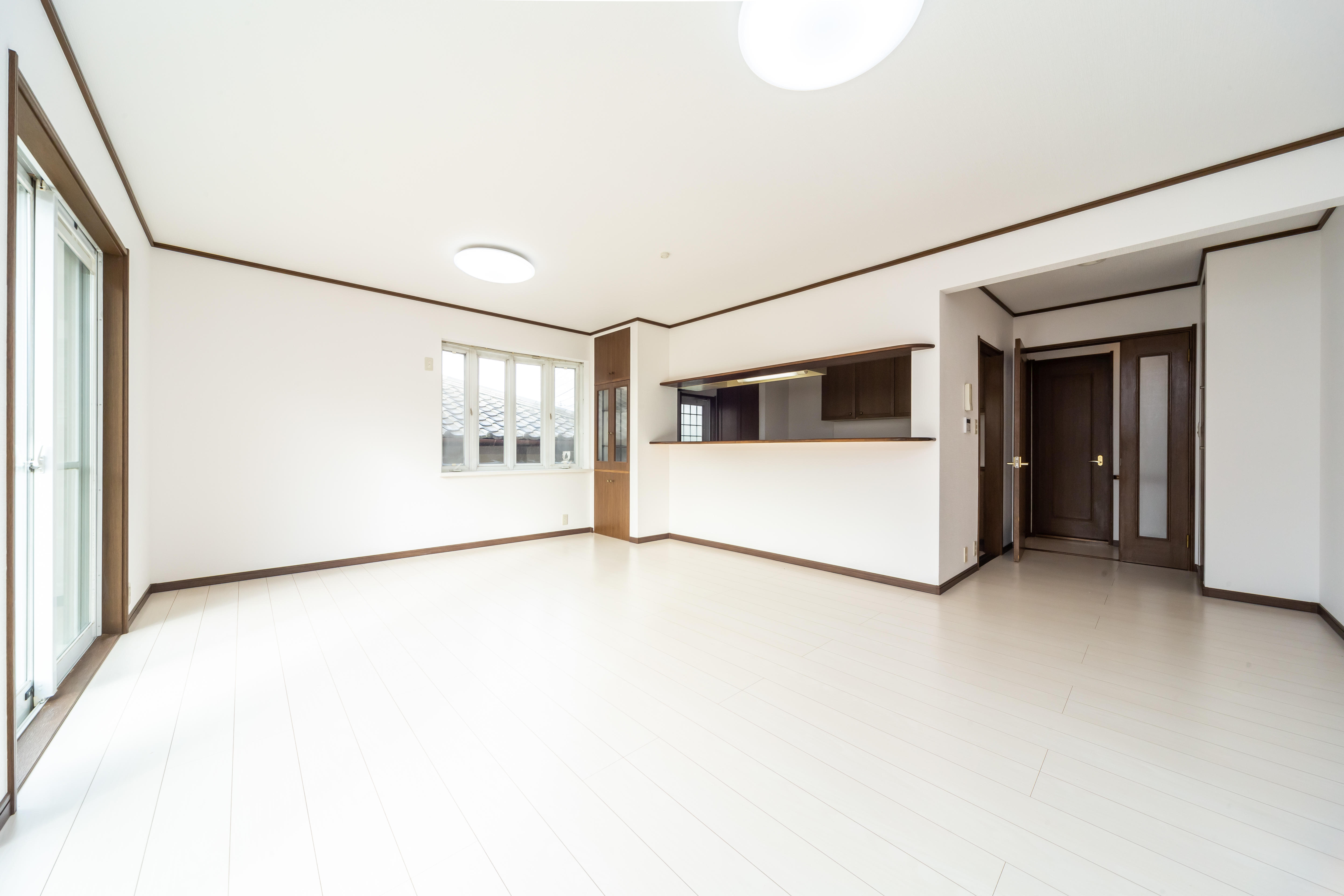 ホワイトのフローリングに替え、明るく清潔感のあるリビングになりました。