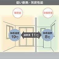 まるごと断熱 部屋間の温度差が少なく、ヒートショックのリスクを低減。