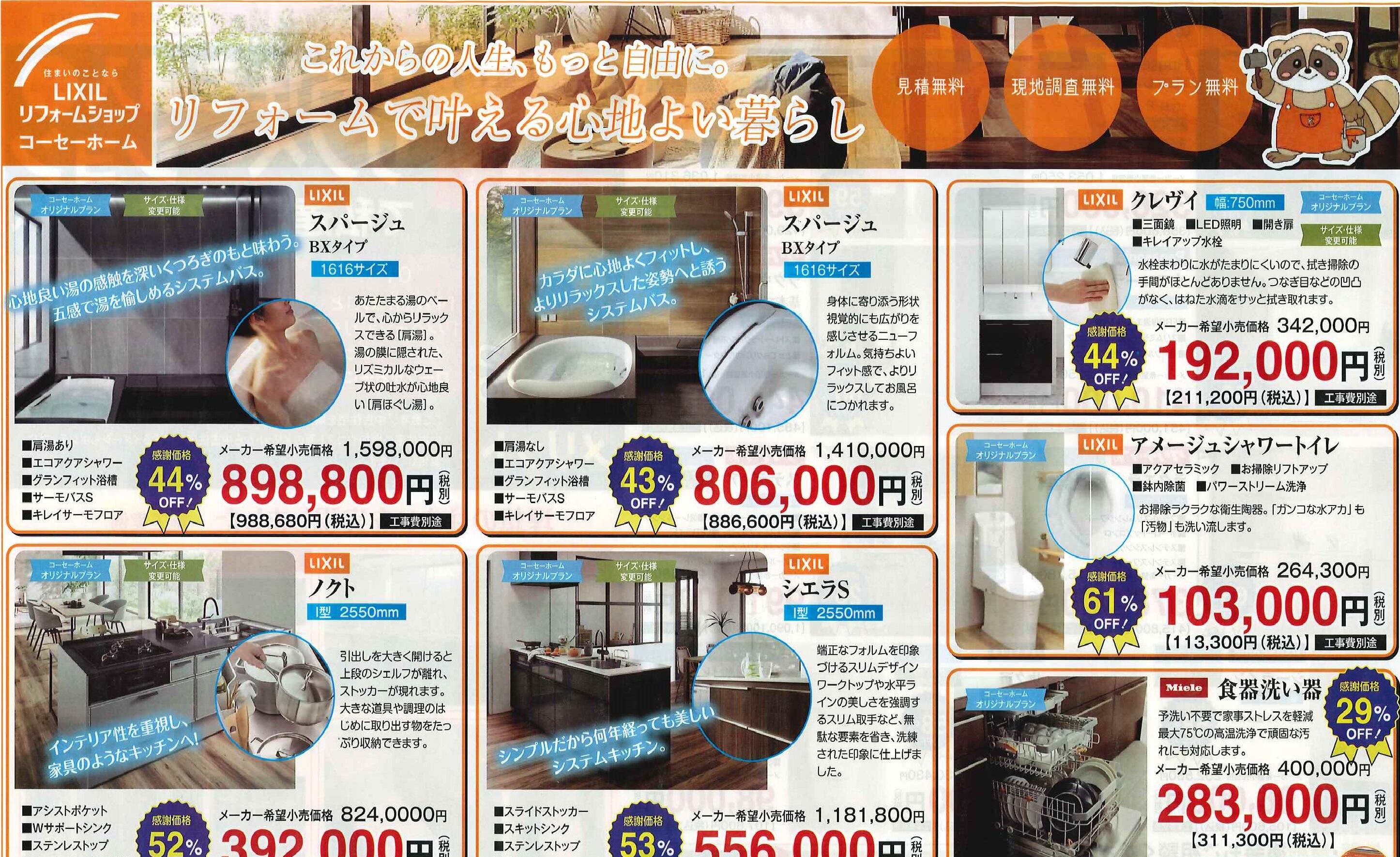 水まわりのリフォームをお考えのお客様に、特別価格でご提供しております。