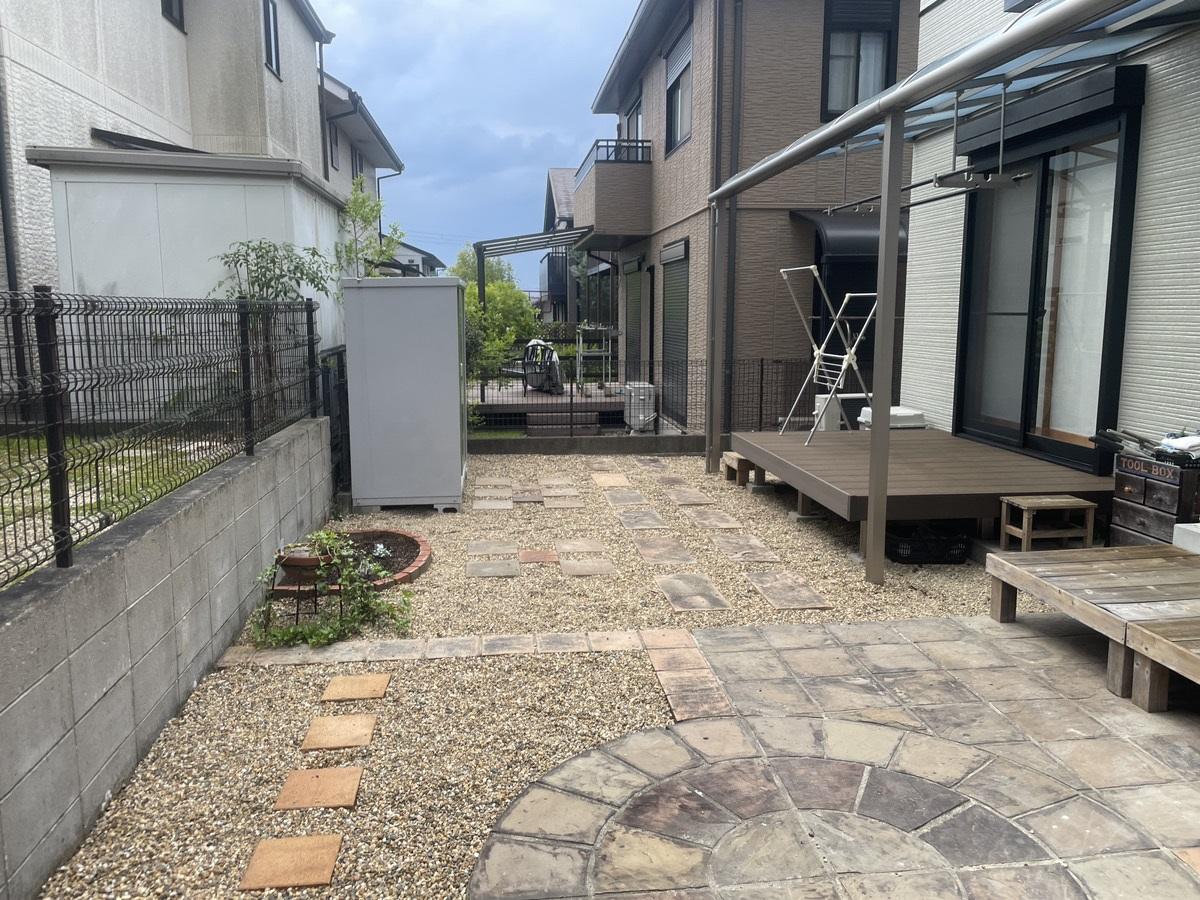 防草シート・砂味石・ウッドデッキ以外のも タイルの敷きなおしやガーデンスペースなどを作ったこともあり、印象が変わりました。