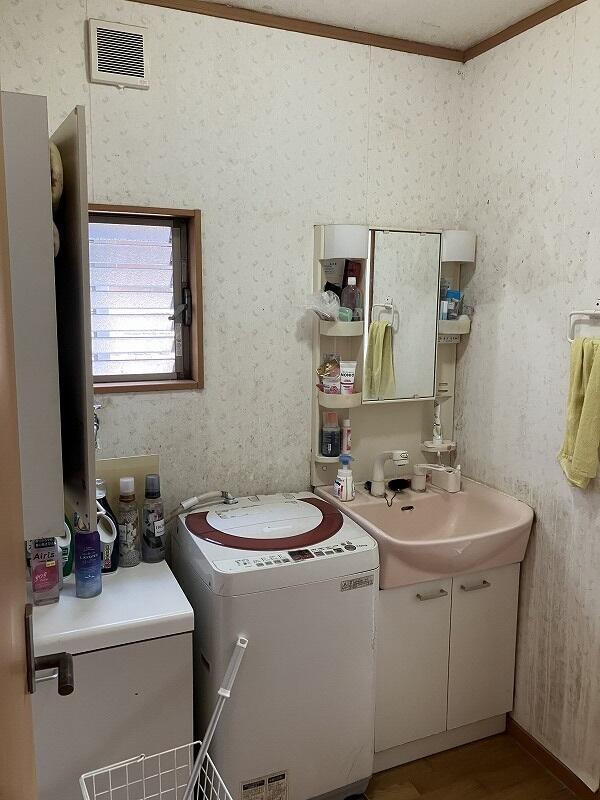 クロスの汚れが気になられるのと洗面台が小さく収納が少ないので お一緒にプラン等を考えて施工させていただきました。