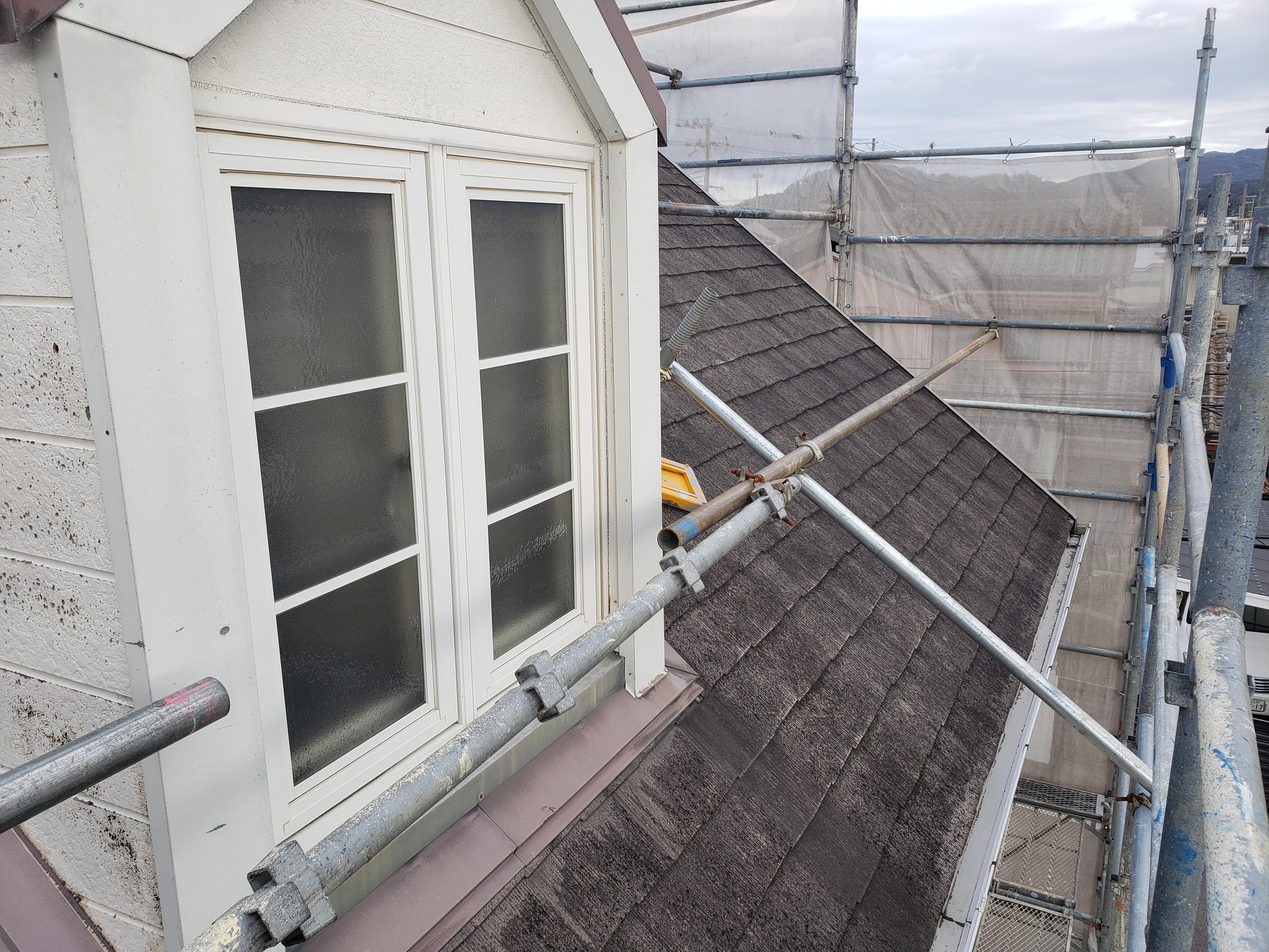 せっかく足場を組むので、メンテナンス面も考え下塗り含め3回の塗装を施した外壁塗装をしっかり施工させていただきました。