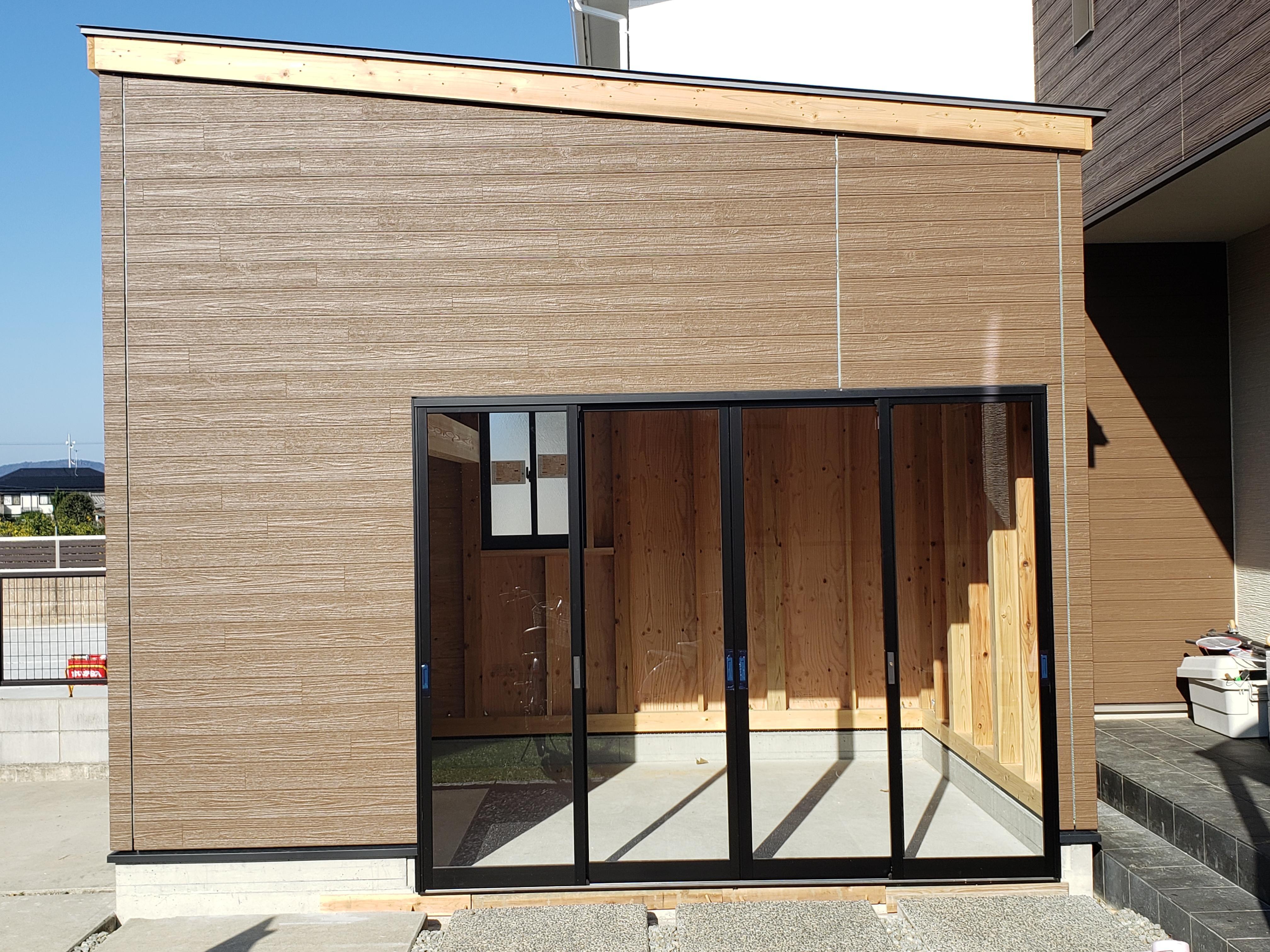 しっかりとした基礎をこしらえて、骨組みは木造で施工。住まわれているお家の外観雰囲気に合わせて茶系色のモダンな倉庫に仕上げました。しっかりとした造りですので、物置としてもDIYなどの作業スペースとしても安心して使用していただけます。ご家族様の暮らしがより豊かになりますことを願っております。当社にご相談いただき、ありがとうございました。