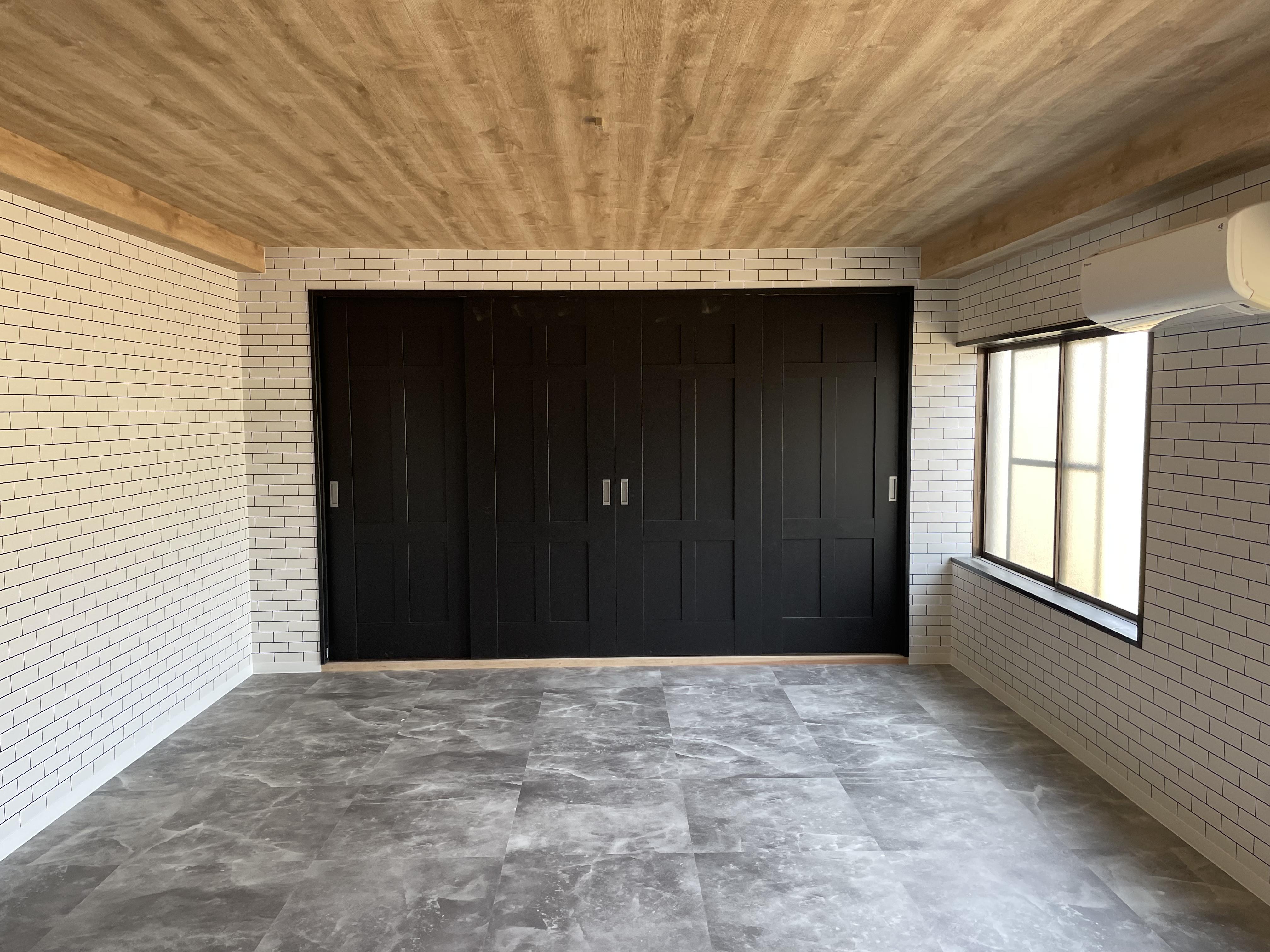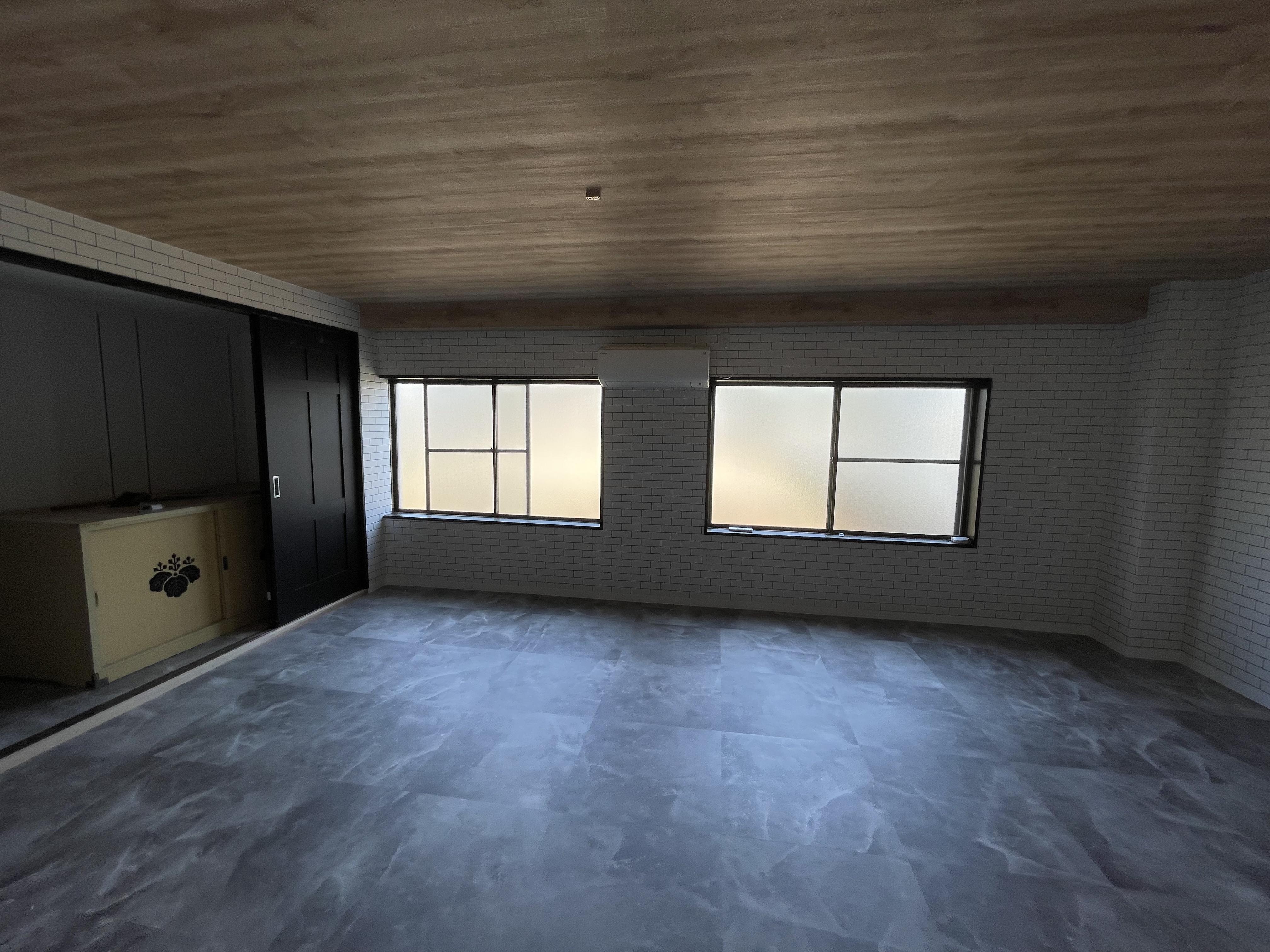ご自宅の離れにある倉庫を、ご家族の生活スタイルの変化により今の生活に合った仕様へ変更したいとのご希望でした。 以前は倉庫の中が和風な印象でしたので、今回すっきりとシンプルで落ち着いた雰囲気で、フロアタイルやタイル貼り調の壁紙でコーディネートした内装へチェンジしました。2階の大空間については柱がむき出しだったので、内壁にボードや壁紙を貼り、床にはフロアタイルで仕上げました。