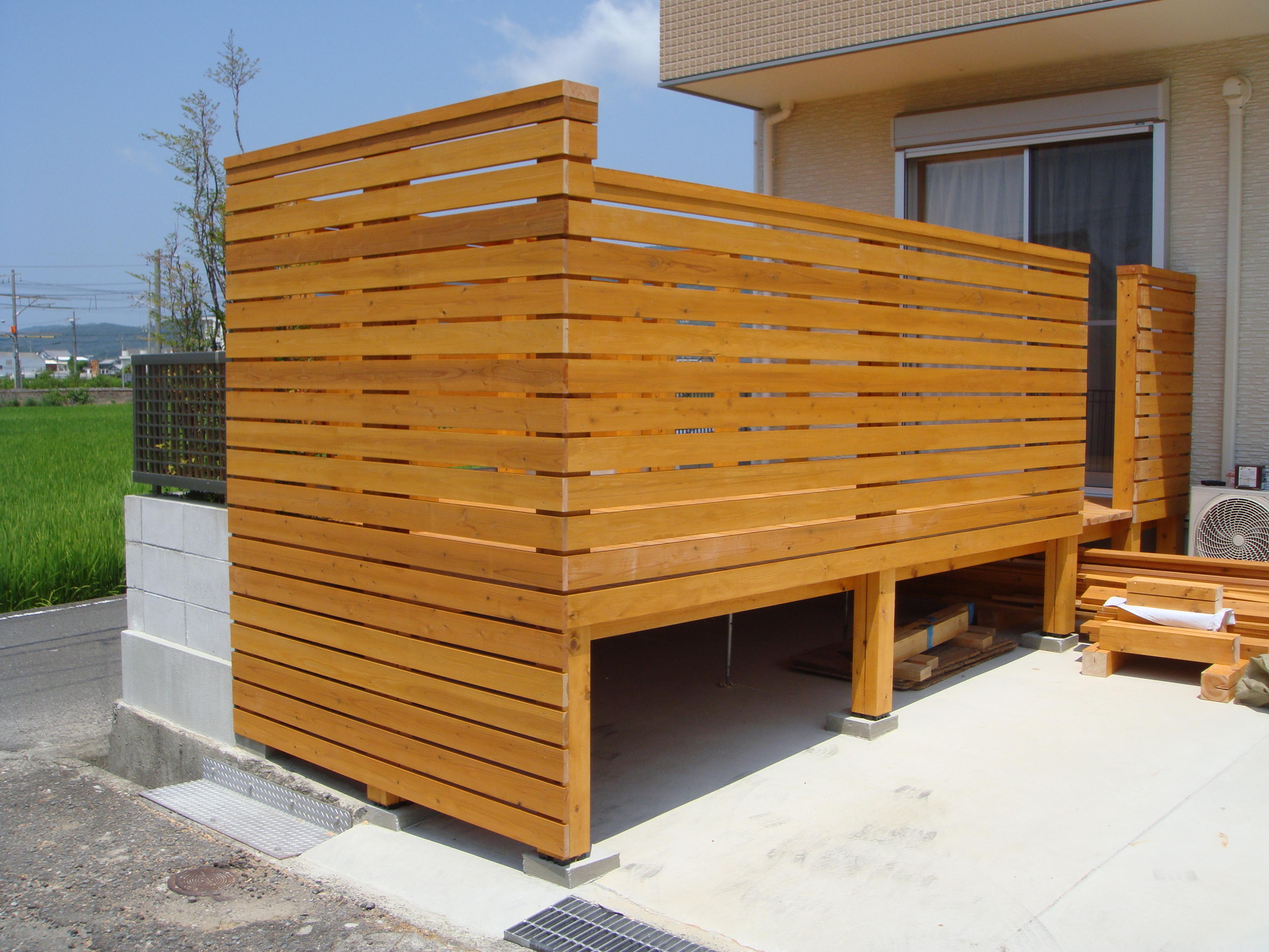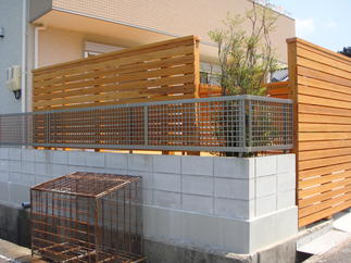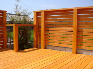 リビングの掃出し窓からわんちゃんがお外で日光浴をできるようにウッドデッキを施工しました。木の温かみが嬉しい、大工さんお手製でオーダーサイズです。もちろんご家族も使いやすいように目隠しにもなる柵をご提案しました。