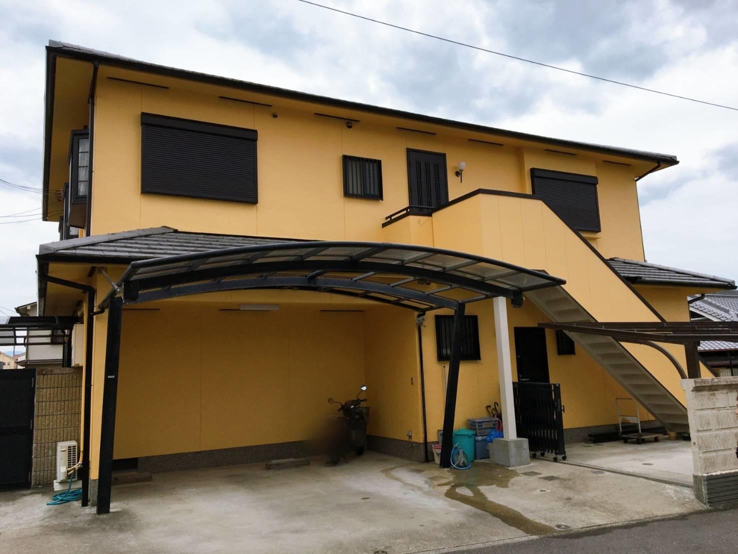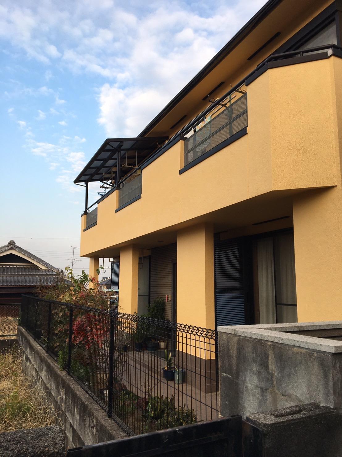 こんにちは! 今回は外壁塗装工事を行いました。 既存外壁色の白色→太陽みたいな明るい黄色へ!