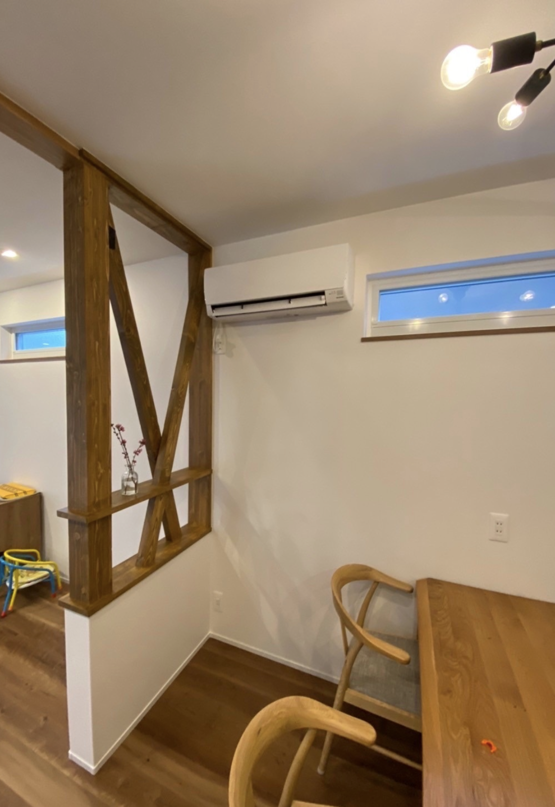 今回は暗いリビング→明るいリビングにする工事を行いました! 壁を無くし見えている筋交いを塗装し、 カウンターを2ヶ所設置する事で上に何か置いて、 奥様が趣味を楽しめる様にしました! 全て壁を無くすとデザイン的にもあまり良くないので、 下は立上りを作ってクロス仕上げにしました! 工事完了後はお菓子まで頂き、 奥様のご実家の工事もさせて頂く事になりました! (玄関リシェント・内窓インプラス工事) ありがとうございました!