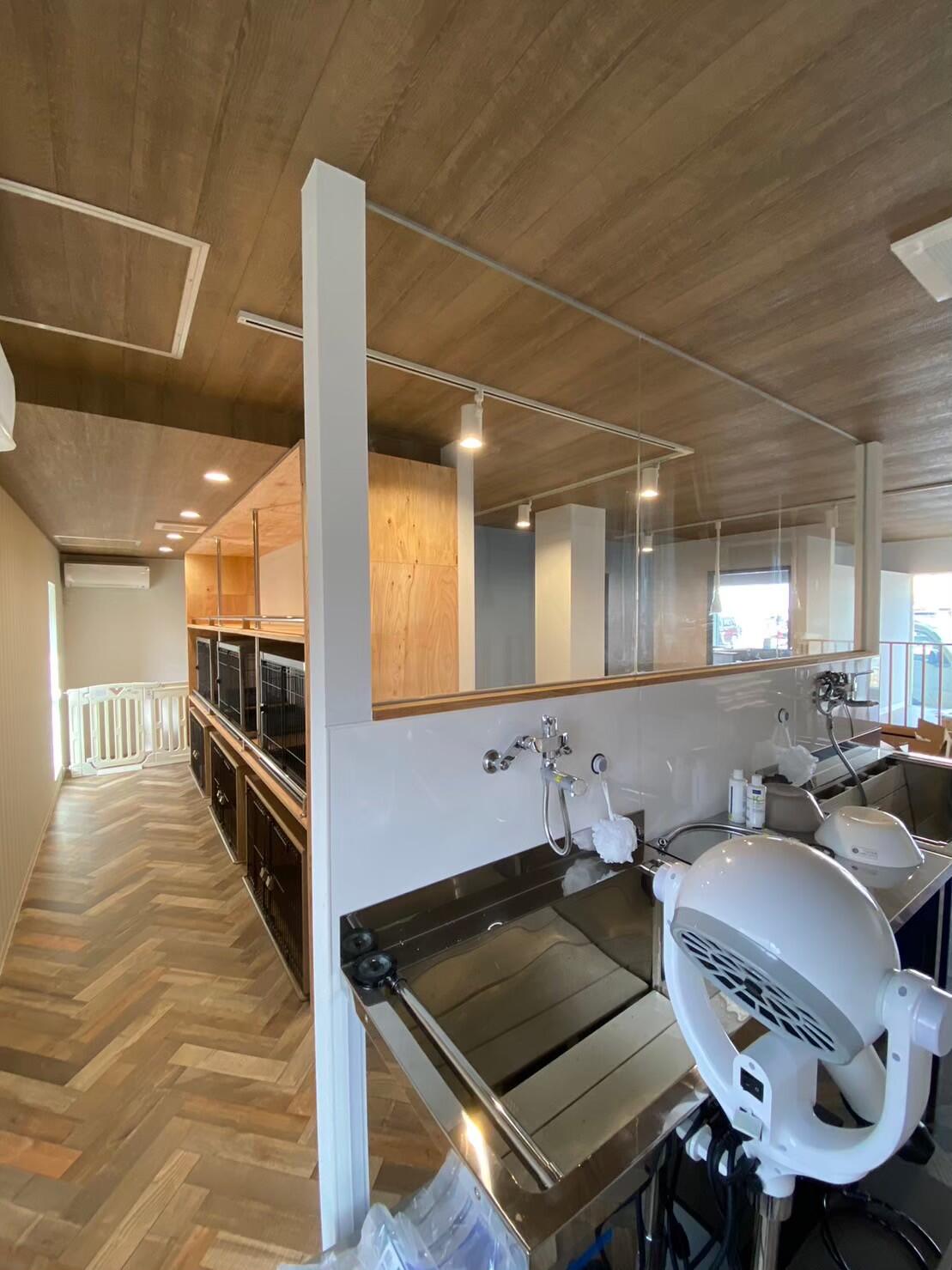 事務所にお問い合わせをいただき、ペットトリミングサロンへの改修工事をさせて頂きました。 とてもおしゃれでカワイイお店です。 スタッフの方は元々、愛玩動物看護士として動物病院で勤務されていたのでワンちゃんやネコちゃんの知識を持たれています。トリミングだけでなく、投薬や点眼にも不安な方もぜひ行ってみてくださいね♪♪