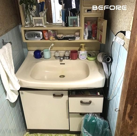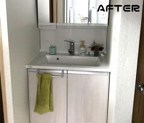 古い洗面化粧台で、手洗いの位置も低く収納も少ないのがお悩みでした。 洗面台を取り替えてからは手洗いの位置も高くなり、腰への負担が減りました。 収納も増え、見た目もスッキリしました。