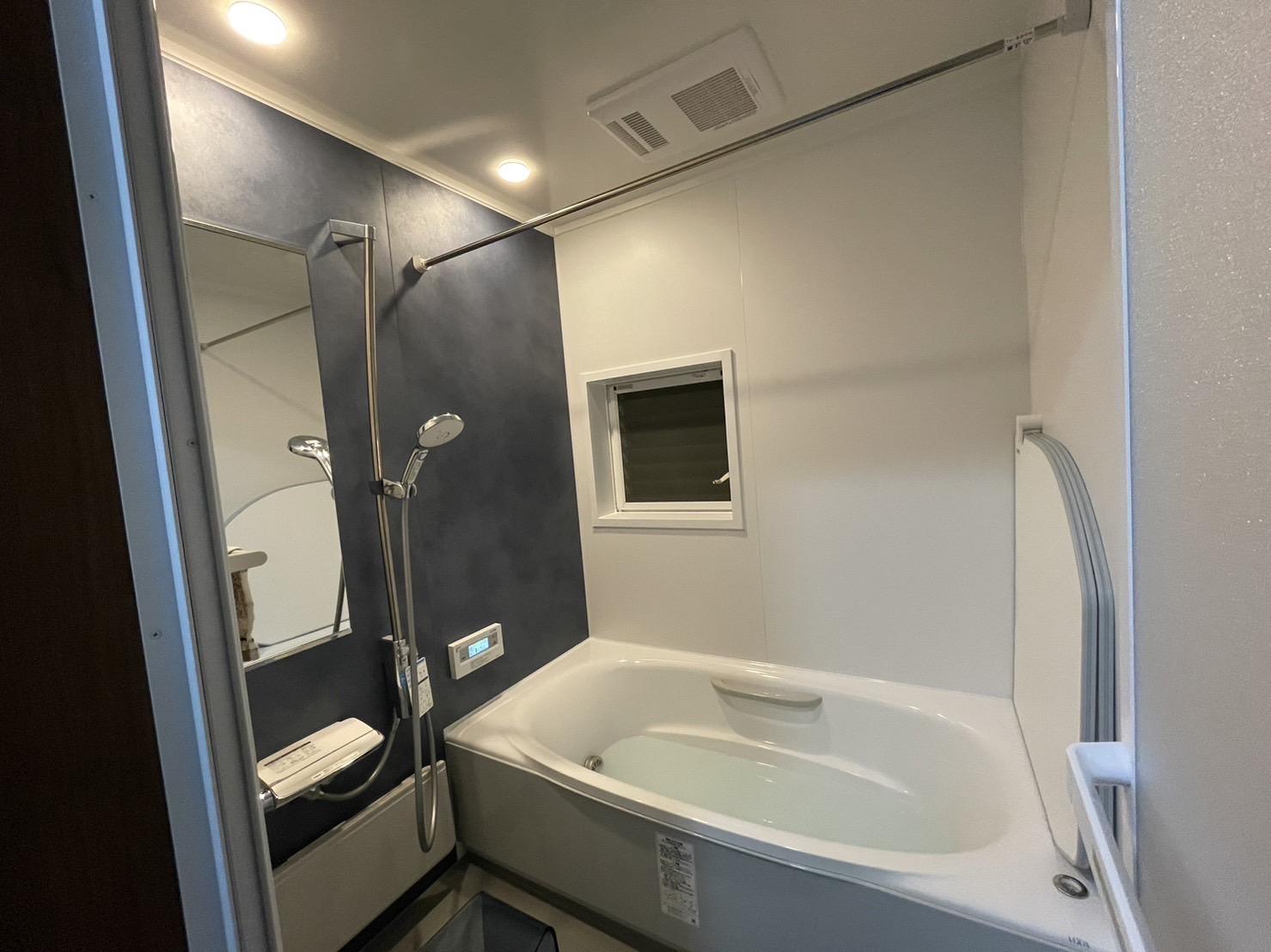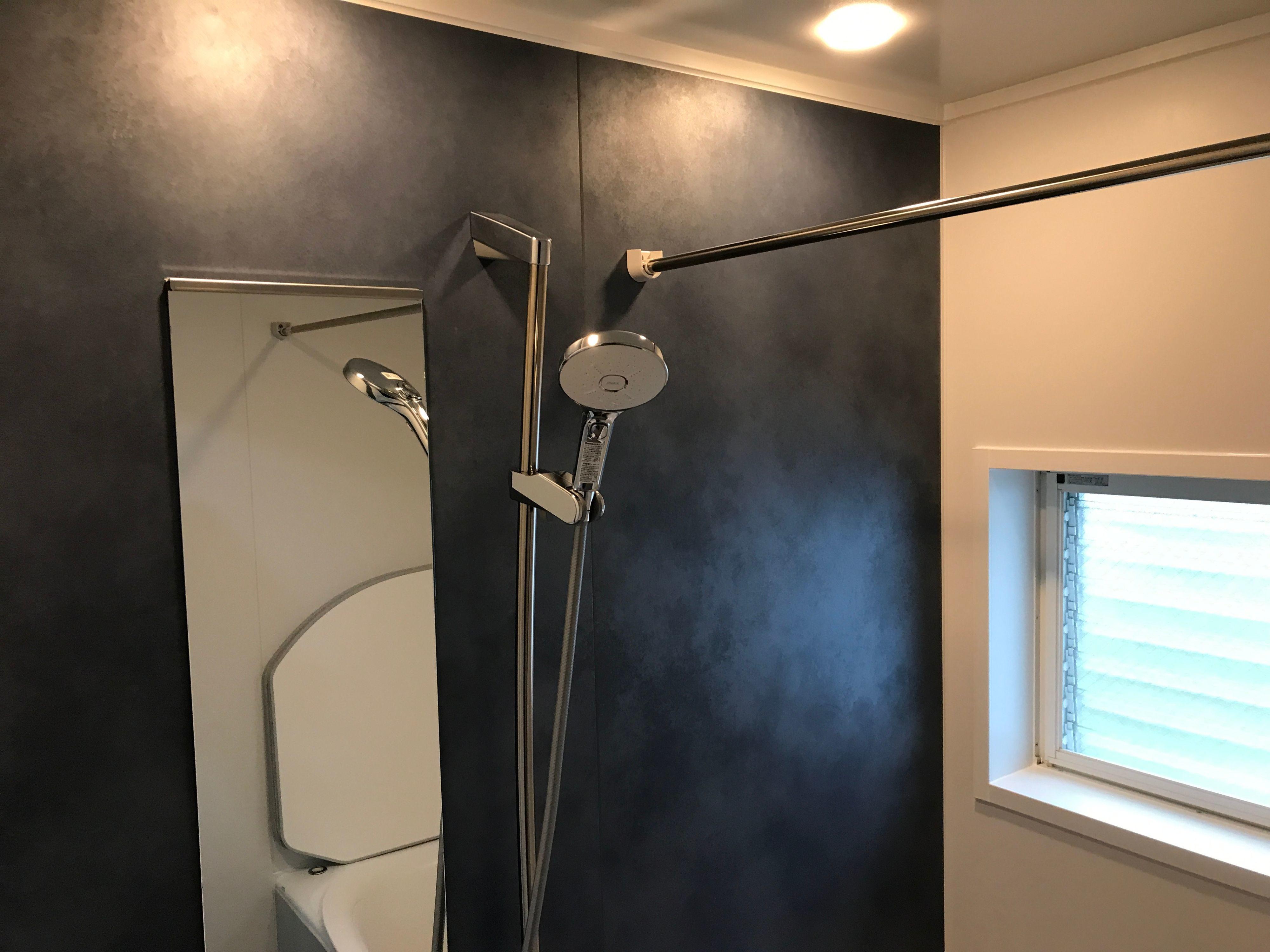 ホワイトを基調とした浴室からガラッとイメージを変えて、ステインブルーが映える格好良い浴室へと大変身!