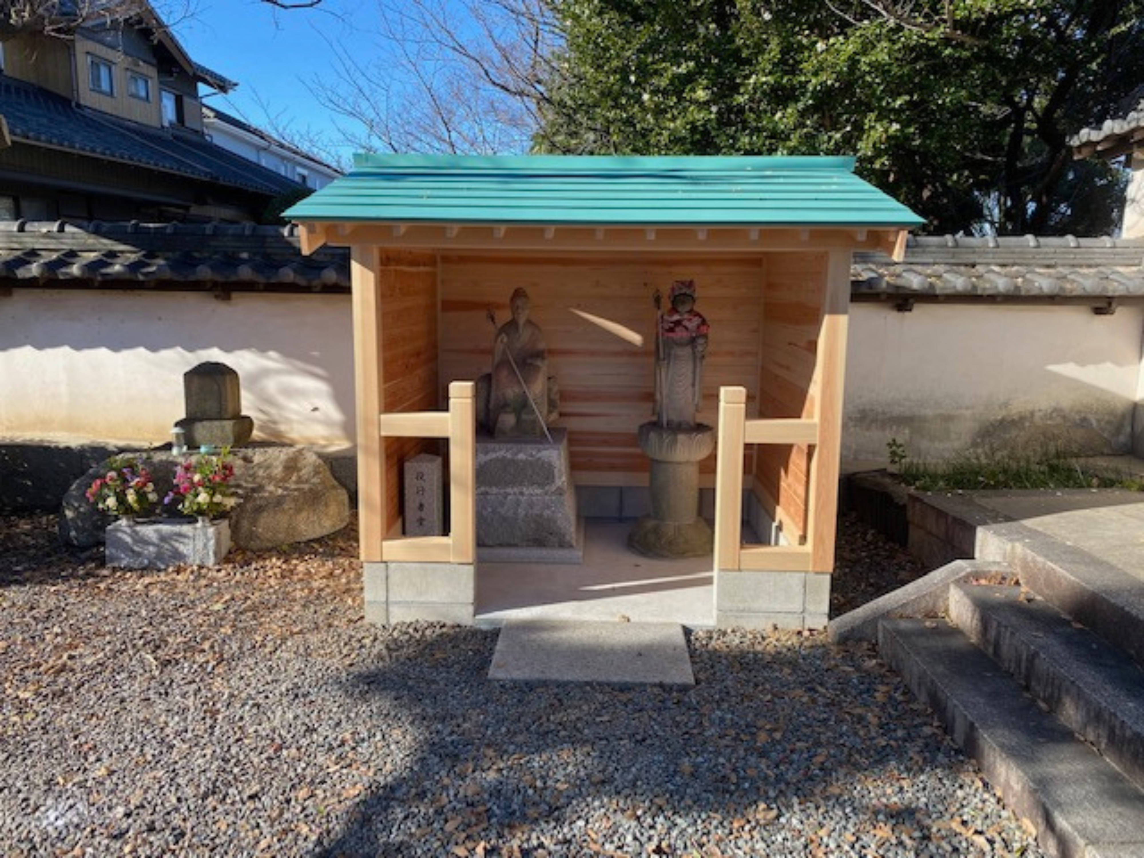 西尾市楠村町にあるお寺の地蔵堂を建て直ししました! 雨風にあたることが少なくなるよう、壁を作り立派な地蔵堂になりました! 見守ってくださるお地蔵様の地蔵堂を建て直すことができ光栄に思います。