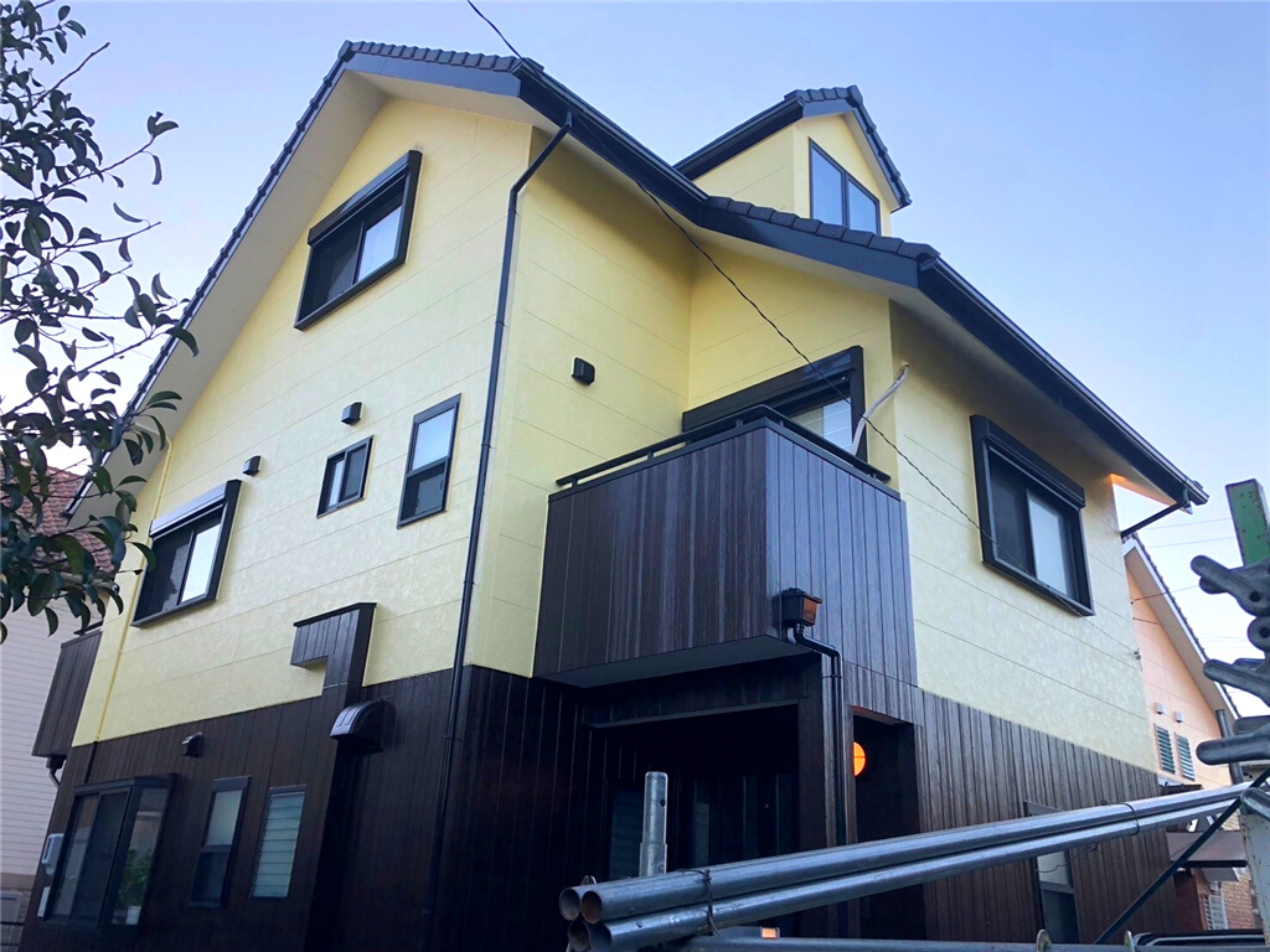 【外壁塗装工事】 外壁塗装工事で一番こだわったところが塗装色です! いくつかあるイエロー系のカラーから吟味して、ベストなカラーを見つけました!