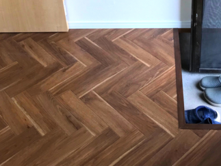 ヘリンボーンのお洒落な床もこだわりポイントです!