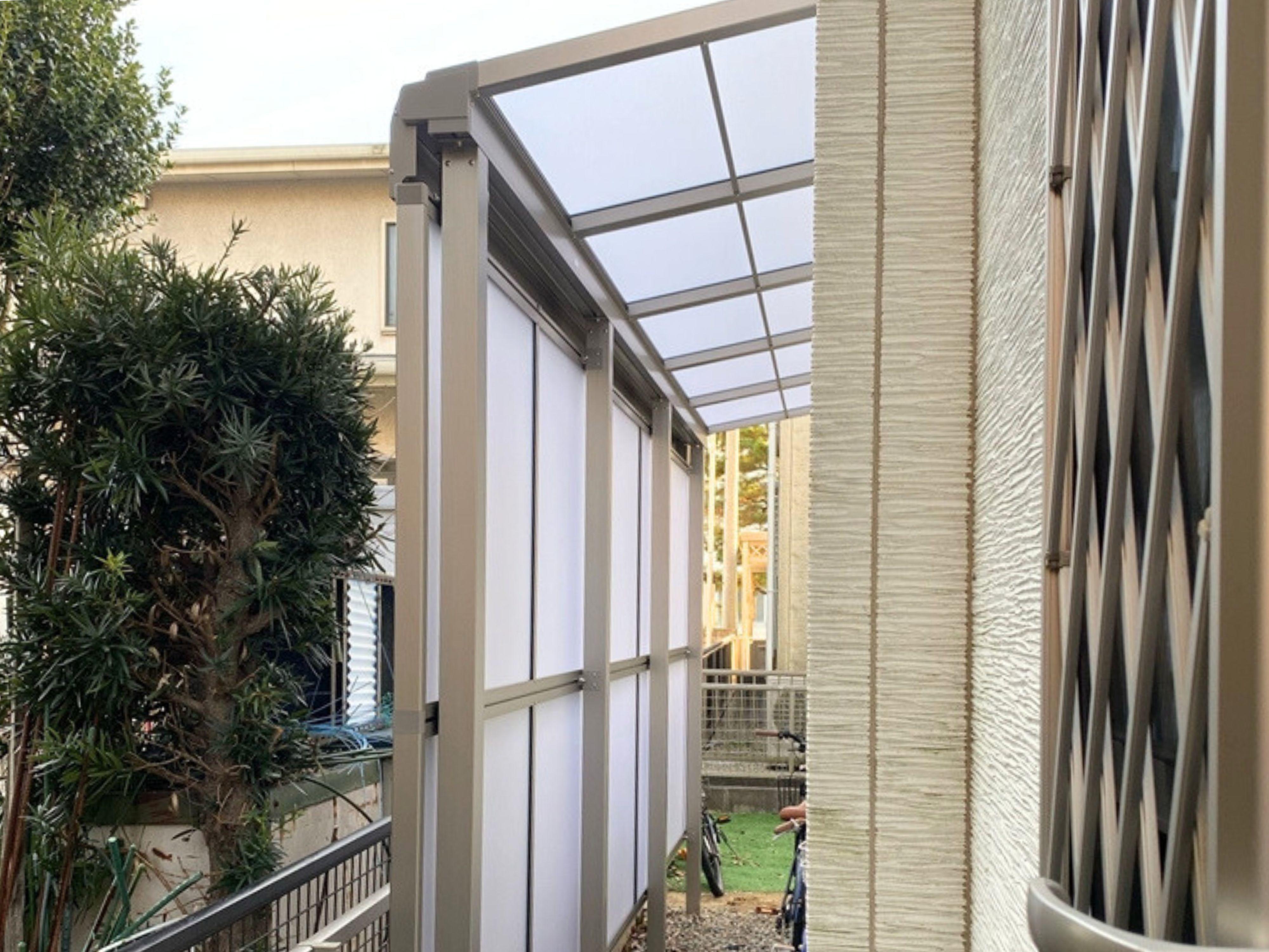 お子様の成長に伴い、自転車が増えて置き場に困るとのことでたくさんのご要望を伺い、より使いやすいサイクルポートを作りました。 雨風を考慮して、頑丈なパネルを設置しました! 商品名:LIXILスピーネ