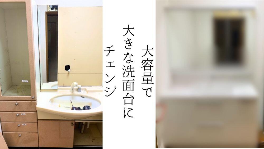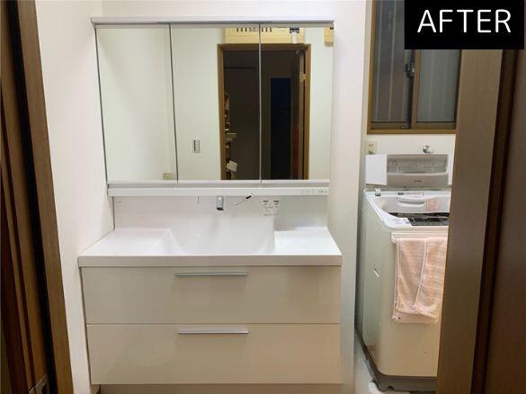 洗面とお風呂をガラリと一新。 今後の生活も考え、コンセントの位置を変更など! 洗面も大きなものに変わって圧巻!